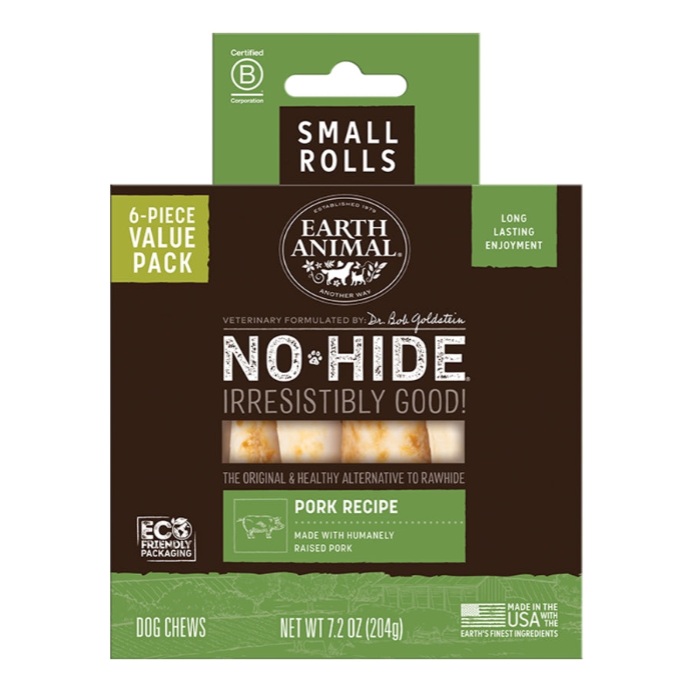 EARTH ANIMAL DOG NO-HIDE PORK ROLLS SMALL VALUE 6 PACK