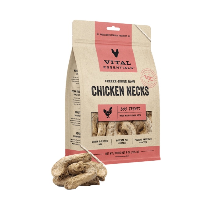 An excellent source of butcher cut protein, chicken necks are loaded with calcium, phosphorus, and other naturally occurring vitamins and minerals to support your pet's everyday vitality. Treat your dog to butcher cut raw protein between meals for a snack that builds strong muscles for more play, naturally supports digestive and oral health, and provides essential nutrients to support your dogs vitality.