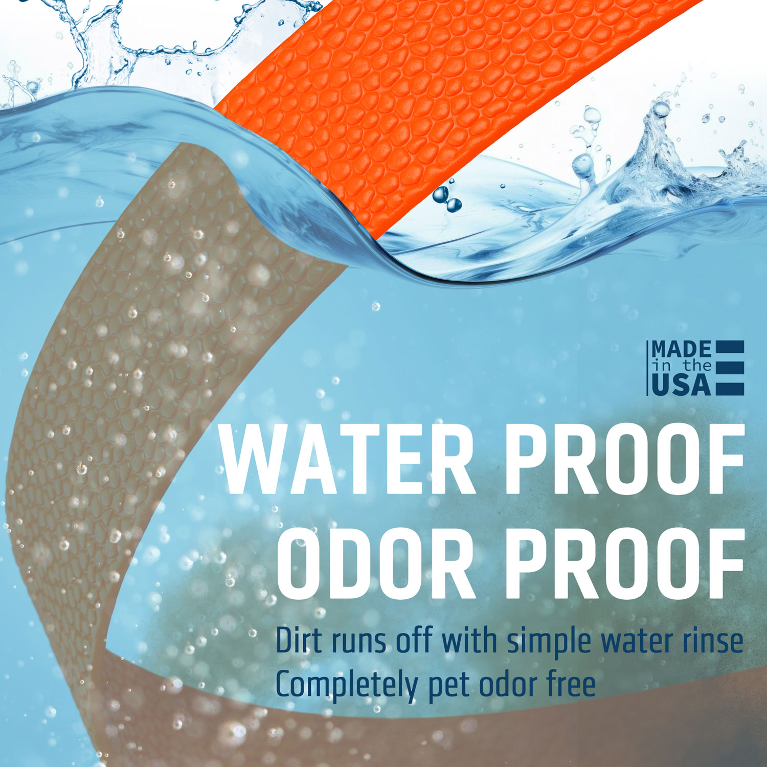 The pebbled coating offers the same features as classic BioThane, it is waterproof, odor proof and easy to clean. 8 colors, 2 sizes, made in the USA