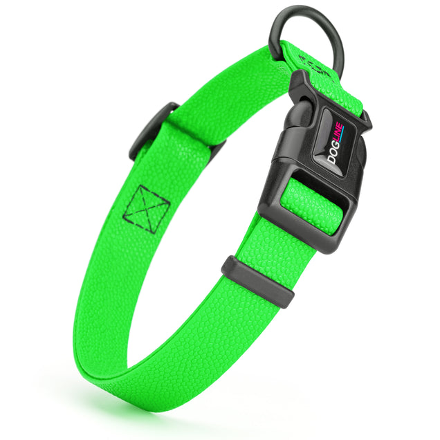 Easy on and off with the lightweight quick release buckle designed for full efficiency. A sturdy welded D-ring makes it compatible with our Biothane Waterproof Leashes and provides a place to attach a dog ID tag.