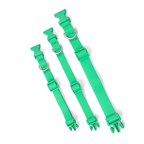 The only dog collar your dog will need. A premium, waterproof collar built for your dog's everyday adventures. Made from durable but lightweight PolyFlex material with an adjustable fit and safe-release buckle for comfort and peace of mind. We know things get muddy out there, so we designed this collar to be dirt and odor-resistant – easy to clean and one less thing for you to worry about. Personalize it with our silicone dog charms (compatible with all collar sizes) to add your dog's name or nickname for a truly custom piece. Because your dog deserves gear that keeps up with their energy!