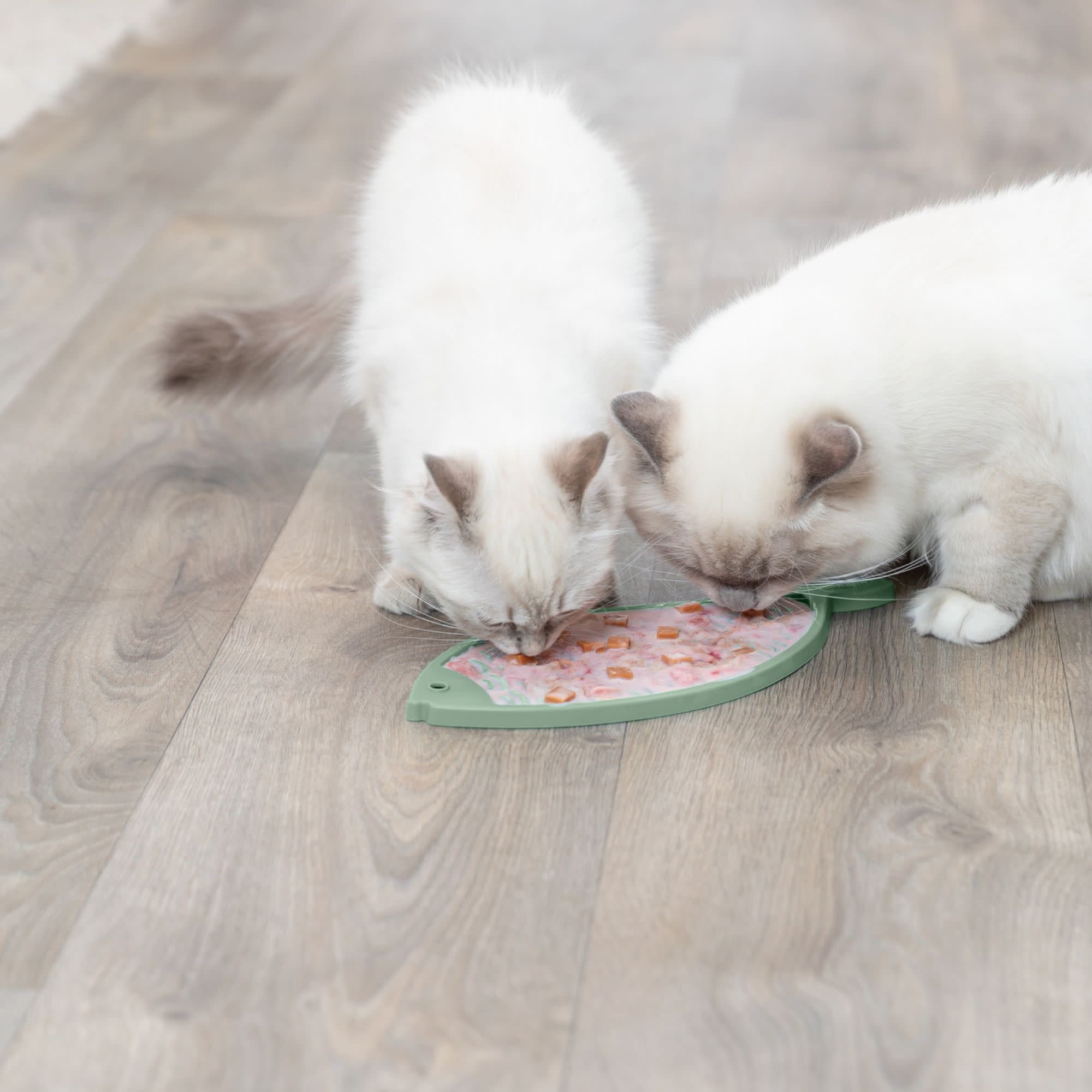 Open up a world of calmness, slower eating, and interactive fun for your feline friend with the TRIXIE Lick'n Snack Mat! This innovative mat features a textured surface that mimics natural licking, promoting relaxation and reducing anxiety in your cat. Spread their favorite soft food, pastes, wet food, purees, or dairy products to keep them entertained. The textured design satisfies your cat's natural licking instincts and encourages slower eating, which can improve digestion and prevent bloating. Plus, it provides mental stimulation to keep your curious kitty engaged. Want to turn mealtime into playtime? The interactive licking experience strengthens the bond between you and your feline friend. The TRIXIE Lick'n Snack Mat is versatile, too! Freeze it with broths or raw food for a refreshing, long-lasting treat, or get creative with endless spreadable options. Made from pet-safe, BPA, Phthalate, and Lead-Free materials, the mat is dishwasher safe for easy cleaning, making it a purr-fect addition to any cat-loving home.