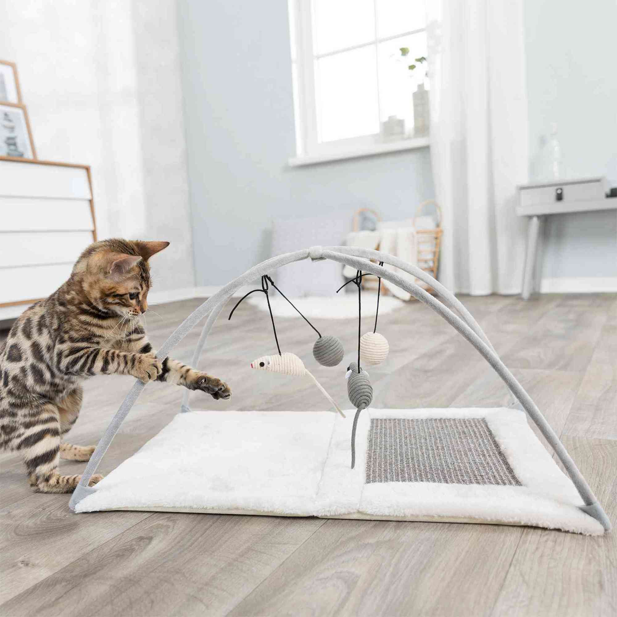 Cats love to play, and playtime is essential to every cat’s mental health. The TRIXIE Junior Cat Activity Center is an interactive play station was designed to not only entertain your furry friend, but also to help encourage their natural instinct for playing, hunting and scratching. The four hanging toys are ideal for interactive play and help to entertain your cat, even when you are not home. It has a cozy, plush mat as the base to provide peaceful lounging or napping after playtime. The activity center features a collapsible design, so it can conveniently fold down and pop up for storage and travel.