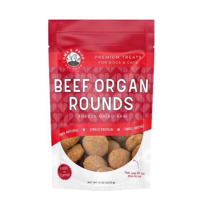 Beef Organ Rounds are a single-protein, premium, & natural treat for dogs and cats.