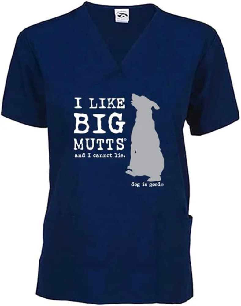 Embrace the Mutt Appeal with Our "I Like Big Mutts" Scrub Top!