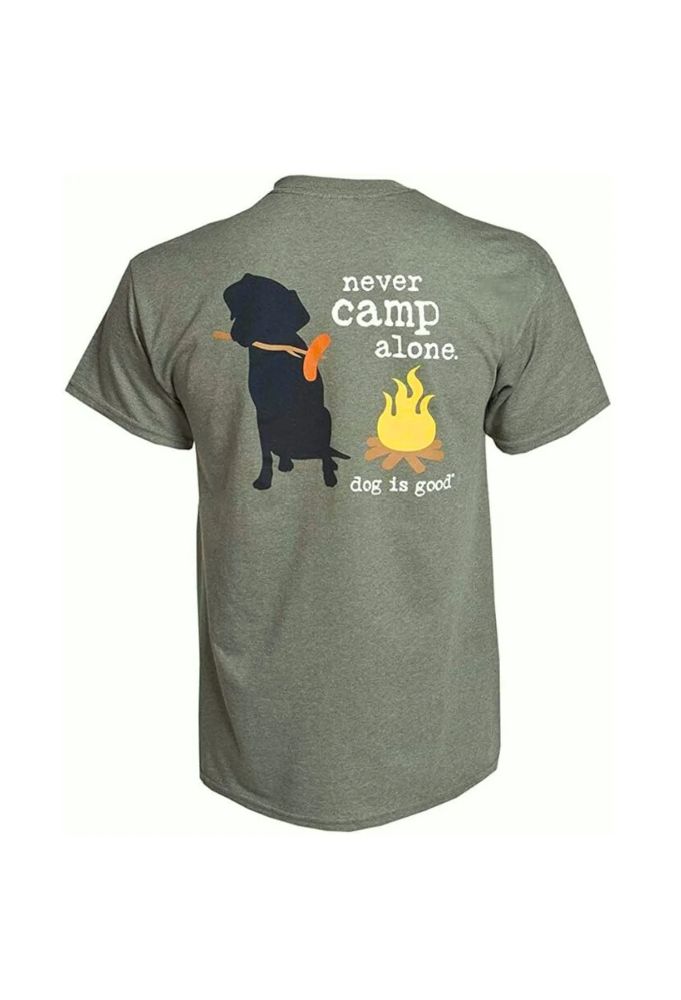 Enjoy Cozy Nights Under the Stars with Your Best Friend! Introducing our "Never Camp Alone" T-shirt - the perfect companion for your camping adventures...