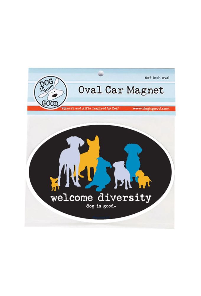 Show your appreciation for the beauty and diversity of all dog breeds with our Welcome Diversity Car Magnet. This magnet is the ultimate accessory for dog lovers who believe that all dogs big and small are perfect! Proudly made in the USA, this 4x6 inch oval-shaped magnet is crafted from high-quality 30 mil magnetic material with a UV coating to prevent fading, ensuring it stays vibrant and visible on your car, fridge, or office space.