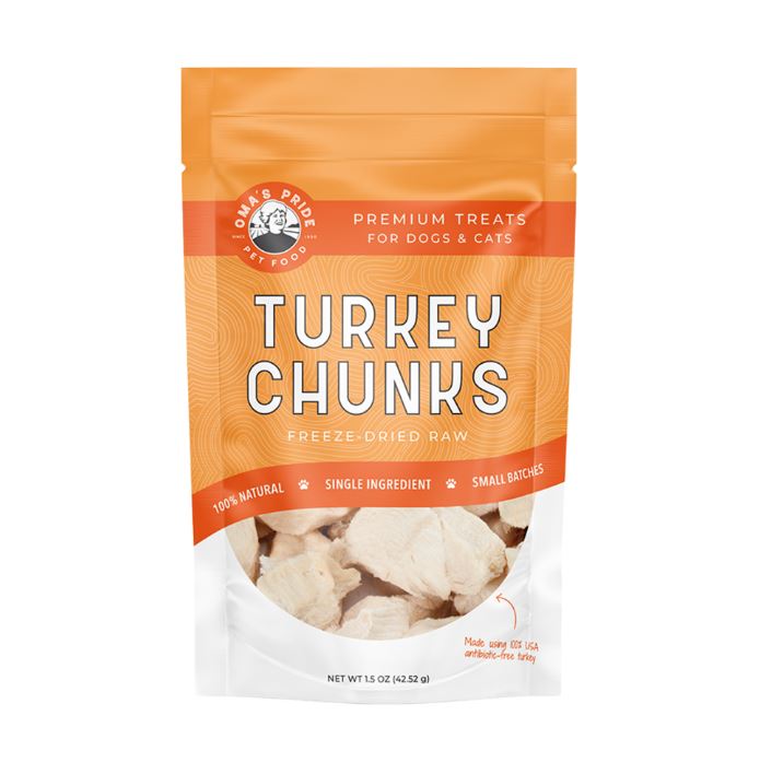 Turkey Chunks are single-ingredient, premium, & natural treats made of turkey breast for dogs and cats.