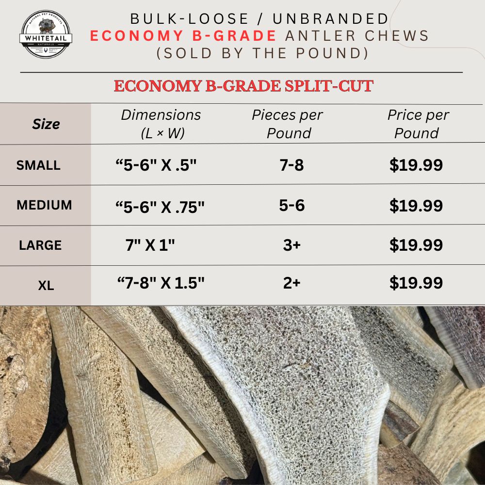 Economy Grade Antler Chews offer a budget-friendly option for customers looking to try antler chews without breaking the bank!