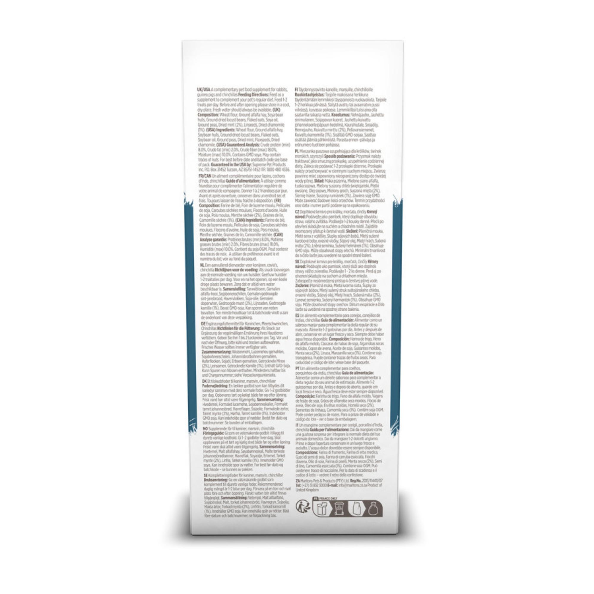 • Rich in fibre with natural prebiotics and soothing peppermint and chamomile to help promote digestive motility and balanced gut health • Suitable for Rabbits, Guinea Pigs and Chinchillas • Selective Care Supplements range is specifically designed to keep your small pet happy and healthy • No artificial colours, flavours, or added sugars, this range provides natural support for small pet health