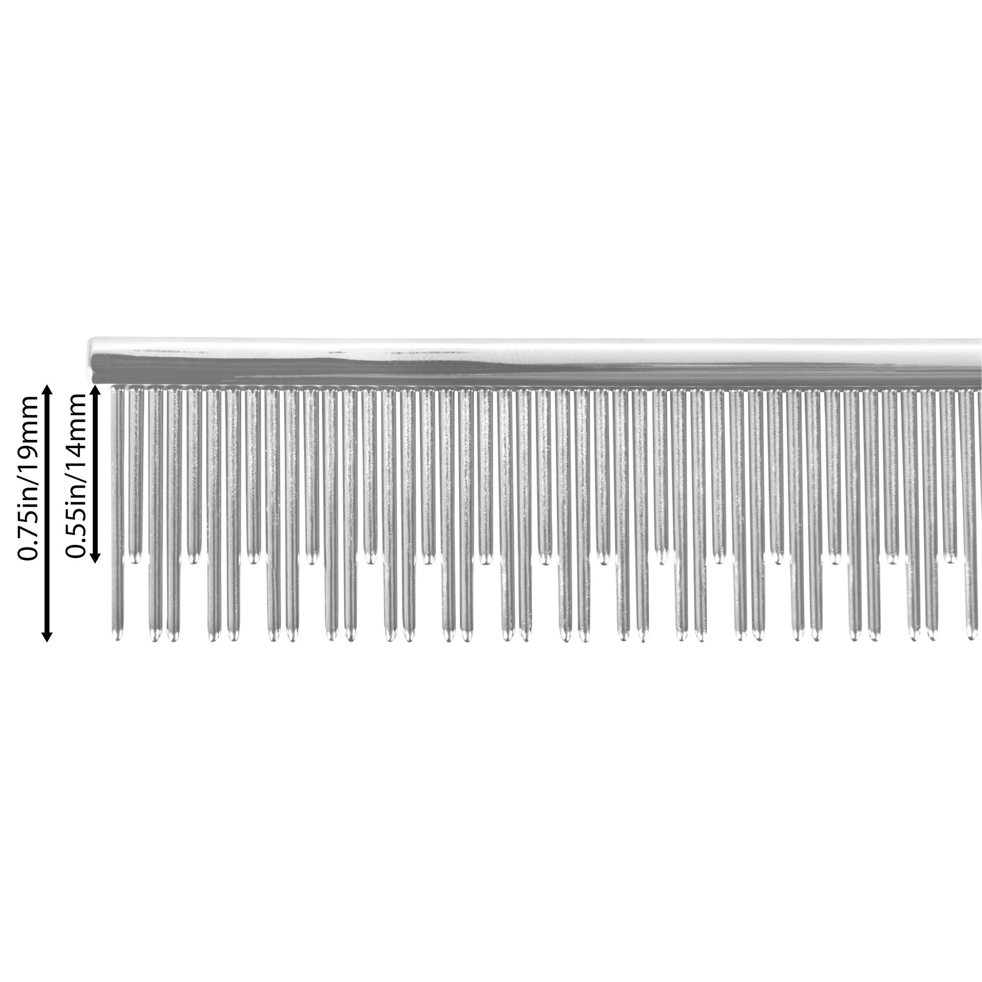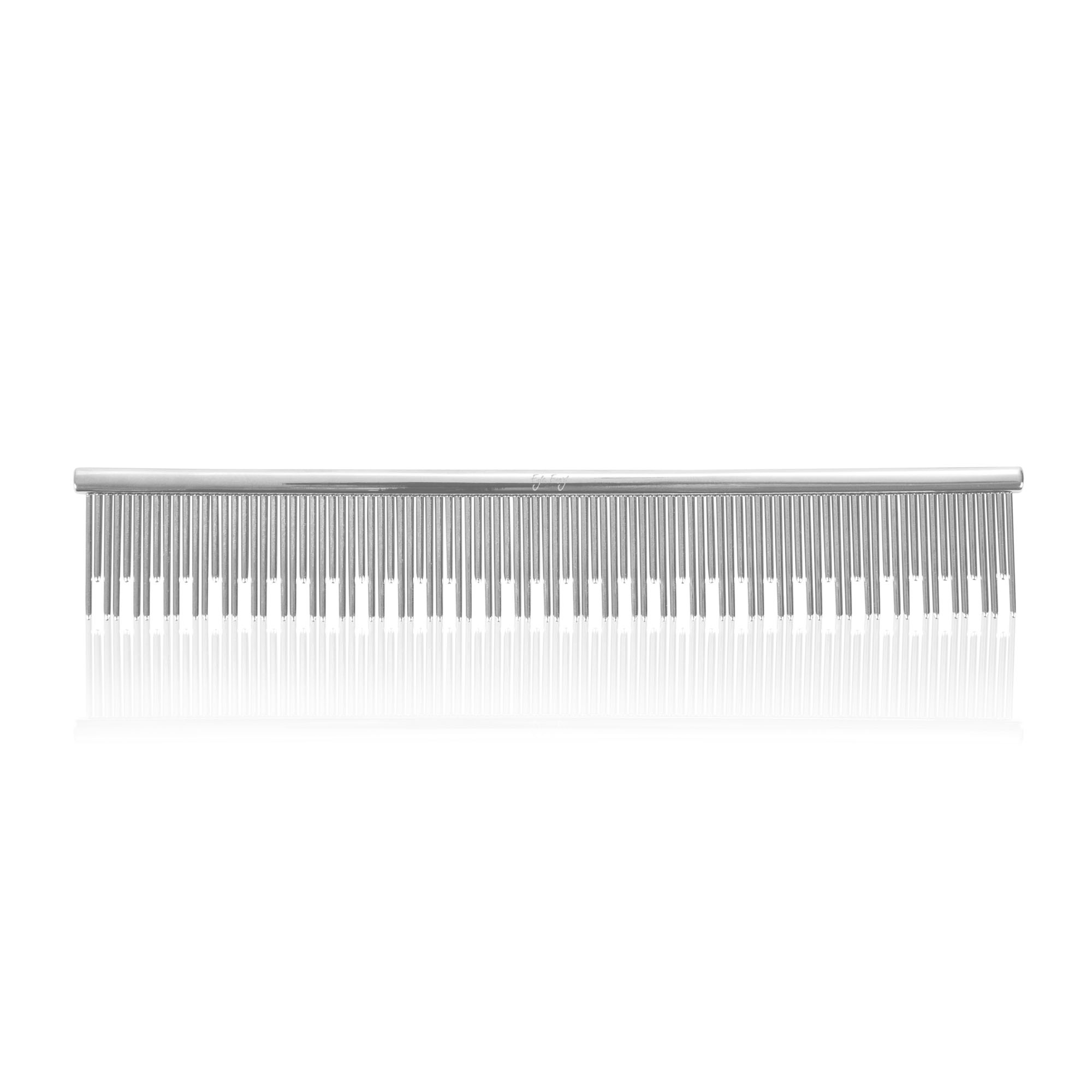 Comb your medium and long haired cats with ease. This is a dual-tooth 6-inch comb with 64 long and 32 short carbon steel pins. Designed with alternating teeth to reach down into the fur and effectively remove the dead underlayer. Each pin has a rounded tip to protect the skin from damage. The comb opens up the coat with tugging or pulling. The rounded tips do not hurt or scratch and make combing a comfortable experience for the cat. Regular use reduces excessive self-grooming and prevents hairballs.