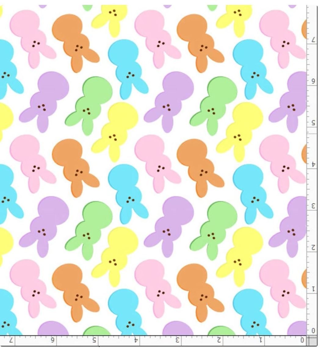 Colorful Peep Bunnies on High Quality White Kona Cotton with Lavender Rolled Hem - DESIGN WILL BE FACING UP...see our other listing for facing down Peeps