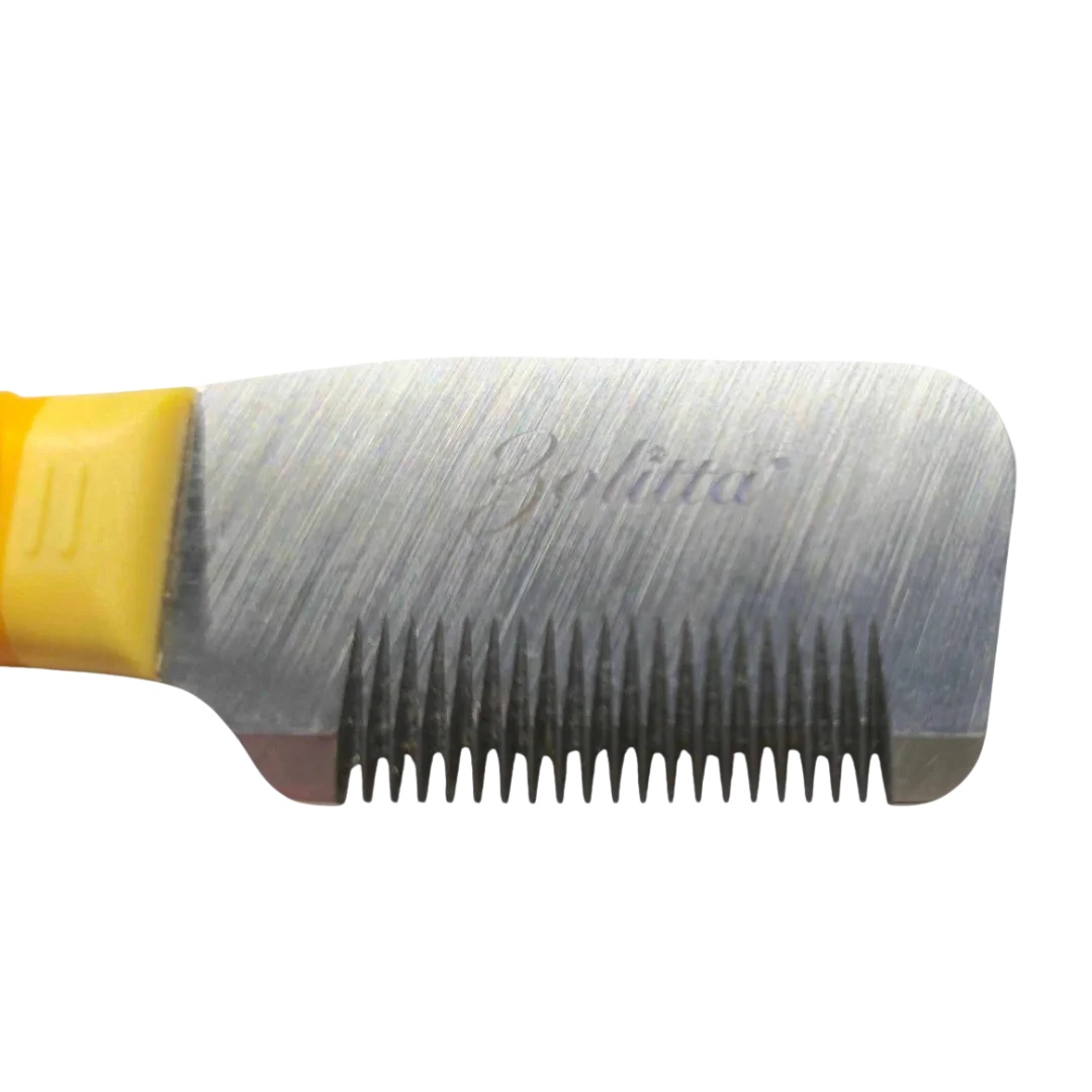 - Right-handed ergonomic stripping knife with wide blade provides optimal thumb support to minimize hand fatigue during extended grooming sessions