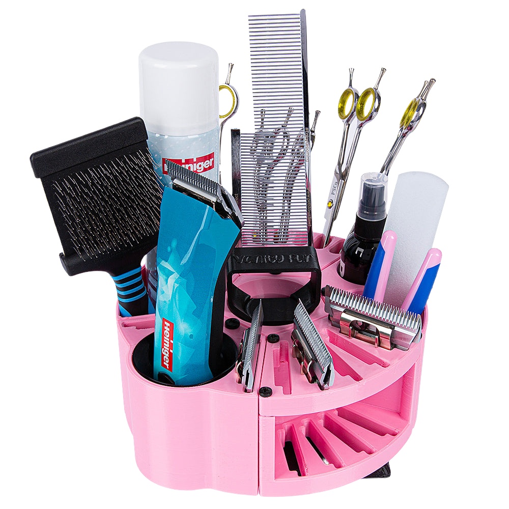 Vanity Fur Houndabout Round Tool Caddy provides a compact and convenient storage solution for all the grooming tools and products that a groomer may need on the go.