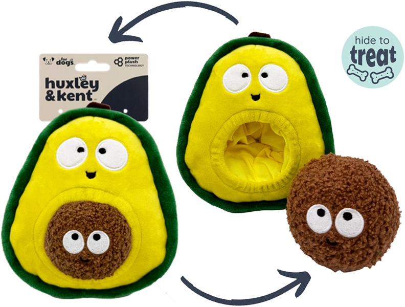 Introducing the Huxley & Kent Pop ‘N Fetch Avocado Dog Plush Toy, the perfect interactive toy for your furry friend! This two-in-one toy features an inner compartment that reveals a second TPR ball toy. Simply hide your pup’s favorite treats inside and cover them with the inner compartment for a fun and stimulating playtime experience. Your pup will love working diligently to uncover the hidden treasures. Plus, the interior crinkle and squeaker add an extra level of excitement. And with its reinforced seams and durable materials, this toy can withstand even the toughest play sessions. Huxley & Kent is also dedicated to your dog’s safety. That’s why this toy has no loose pieces and is made with non-toxic dyes. Plus, it’s machine washable for easy cleaning.
