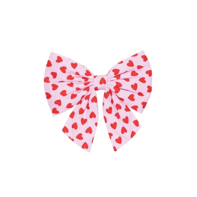 Mini Lovesong sailor bow - little red hearts on pink cotton