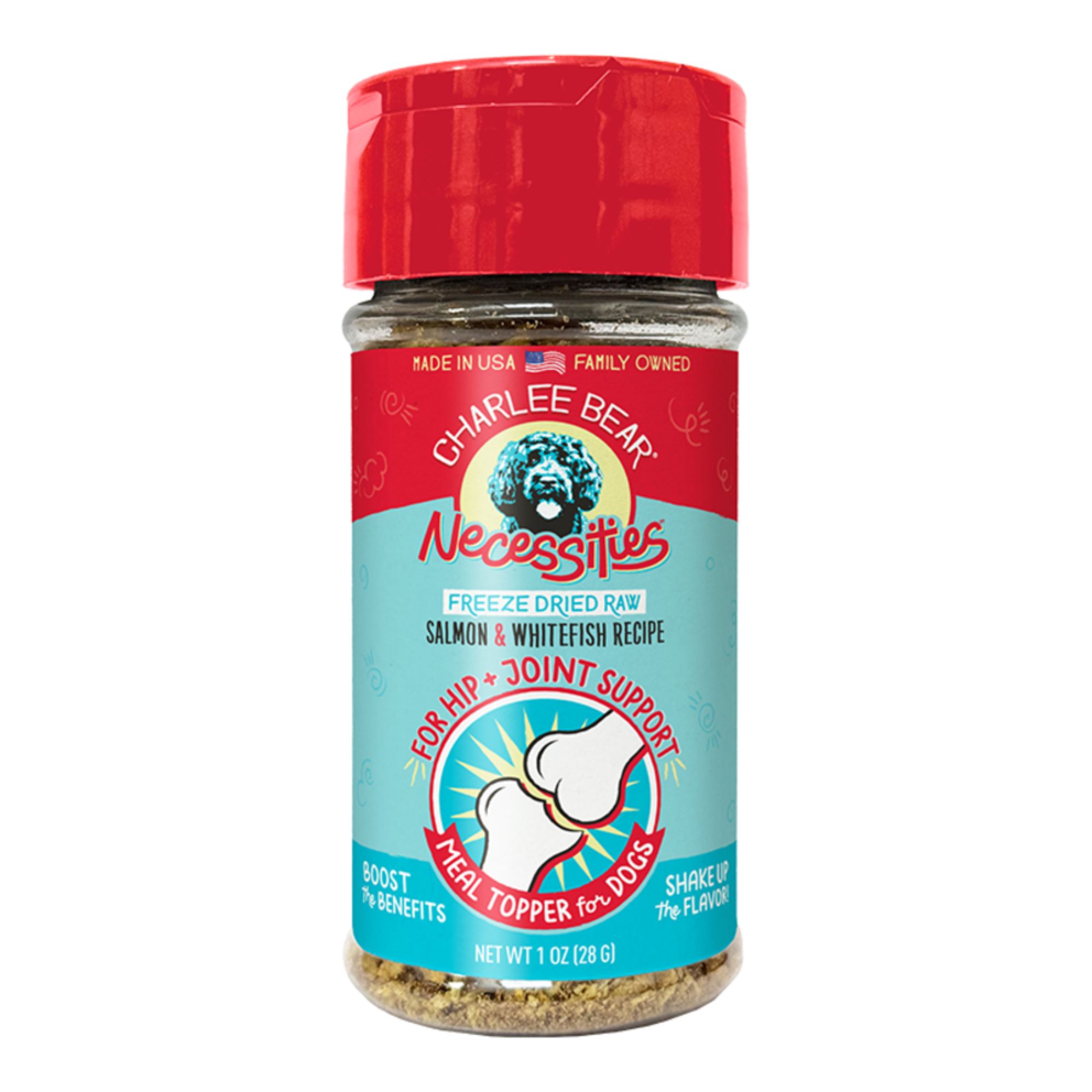 Elevate your pup’s mealtime and nutrition with Charlee Bear Necessities Freeze-Dried Salmon & Whitefish Recipe Hip & Joint Support Grain-Free Dog Food Topper. This tasty, functional meal topper is made in small batches with freeze-dried raw salmon and whitefish, along with marine microalgae oil, turmeric, cultured yeast, and flaxseed, to nourish and support your BFF’s hips and joints. Plus, it’s free from artificial flavors, corn, wheat, and soy, making it a healthy and delicious mealtime addition your furry friend will love.