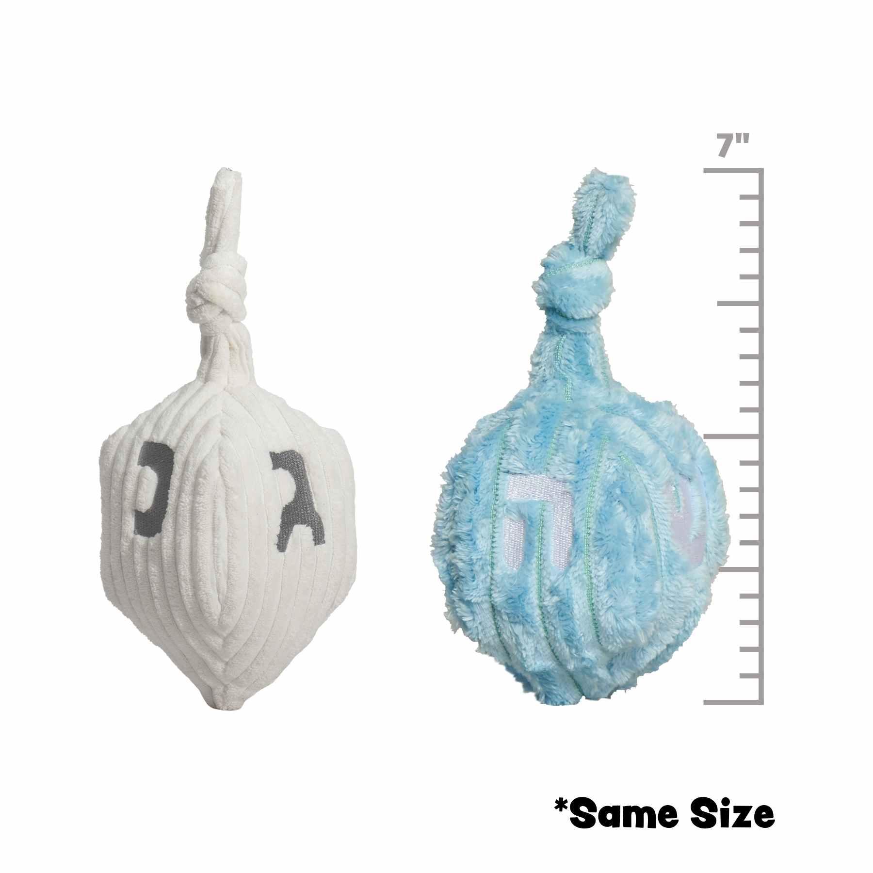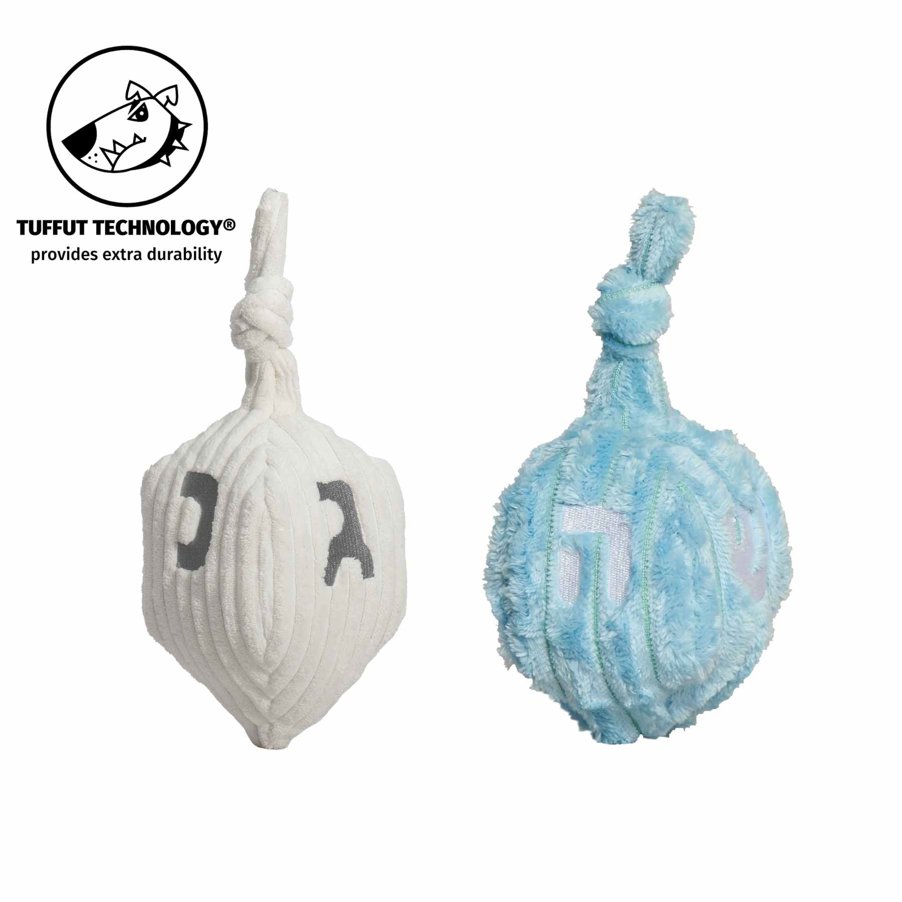 Each color — classic blue and snowy white — features a knotted top for easy gripping and interactive fun. Reinforced with Tuffut Technology®, it offers added durability while maintaining a soft, gift‑ready feel. A standout item for Hanukkah displays, gifting, and impulse‑buy placement.