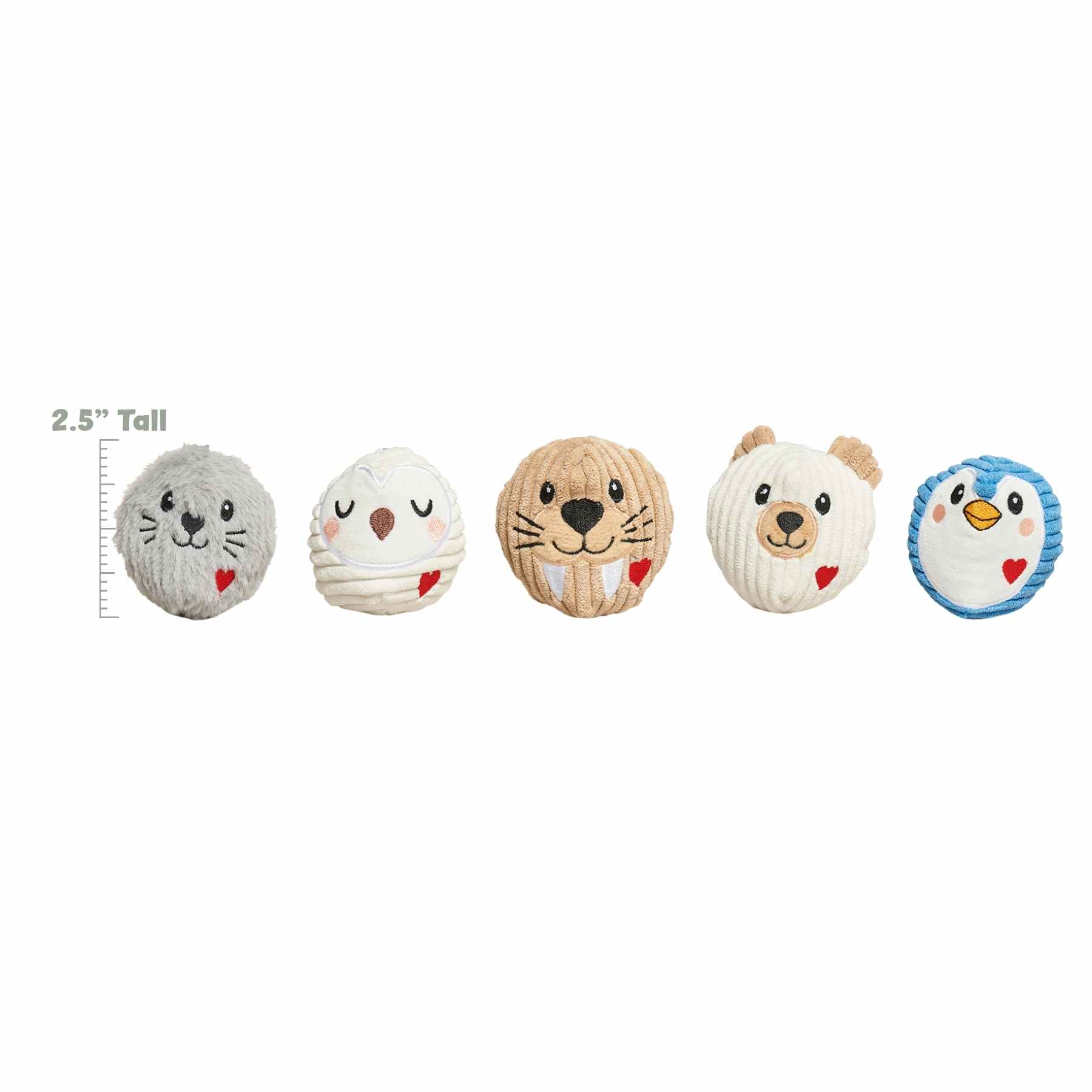 The Winter Friends WeeHuggles™ Balls 5-Pack offers five North Pole–inspired plush characters—Polar Bear, Penguin, Snowy Owl, Seal, and Walrus—each with soft plush and an internal squeaker. Sized for small dogs and perfect for holiday add-on gifting, this multi-pack merchandises well with seasonal assortments. Master cartons contain 5 retail-ready packs (25 total toys). Backed by our HuggleHeart™ Promise.