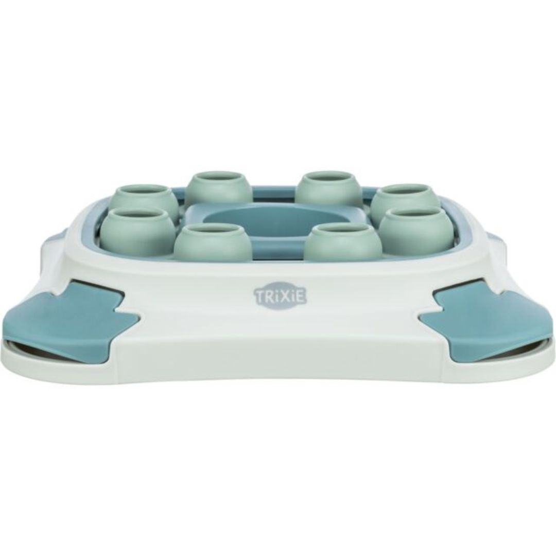 fun and challenging snack game for dogs pet earns reward by sliding the compartments. The treats would fall into the inner bowl or the outer covered lids reduces boredom and rewards playful behavior interactive play creates bonding for pet and human pet enjoys treats without overeating non-slip rubber ring secures base includes booklet with tips and tricks for optimal training material: plastic easy to clean; dishwasher safe BPA, Phthalate and Lead Free