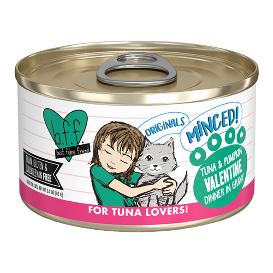 Your best feline friend is sure to exclaim! Be my Meowintine! once they've filled their tummy with this delicious, high-moisture meal, filled with minced tuna and pumpkin.