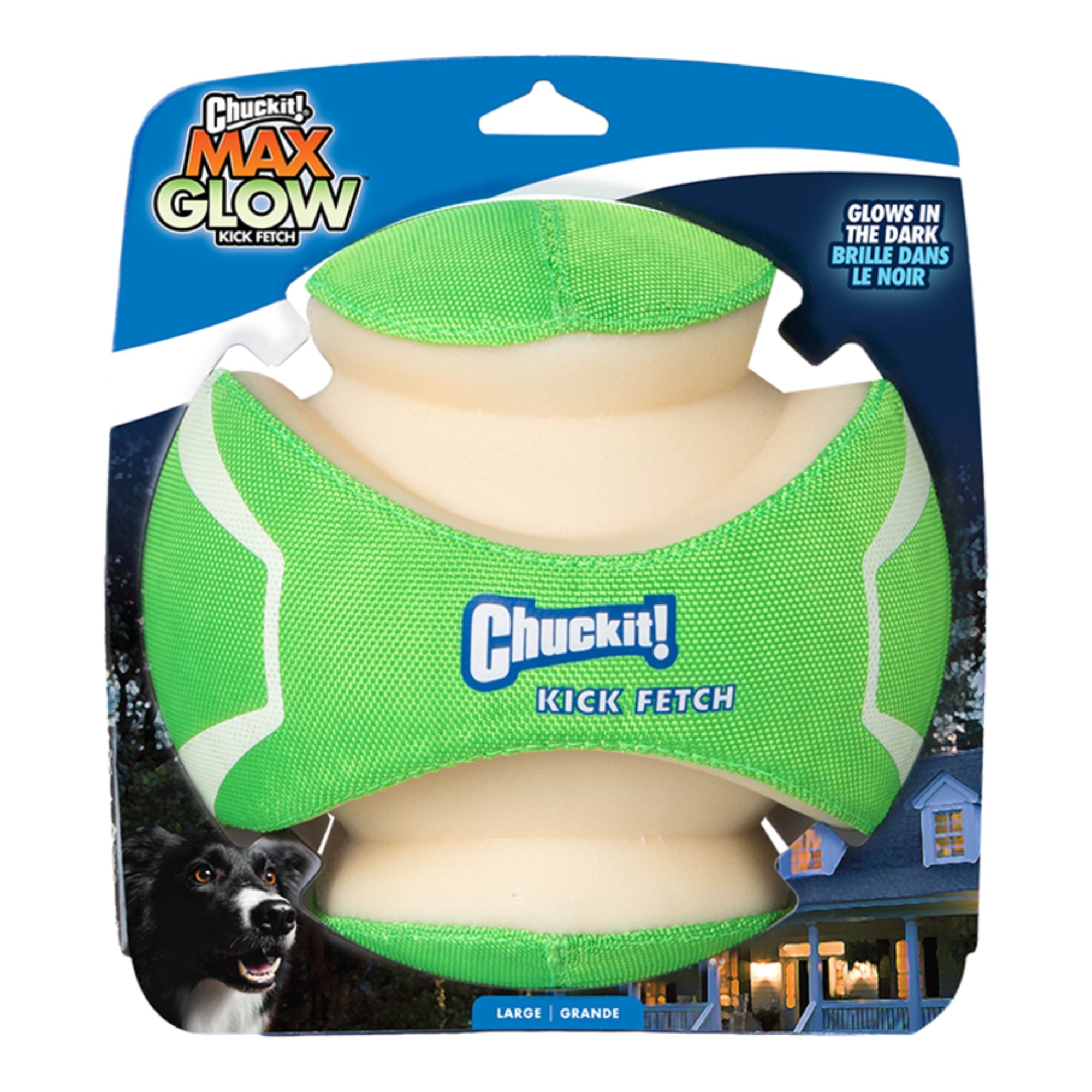 Extend fetch time to early mornings and late nights with Chuckit! Kick Fetch Max Glow fetch toys.