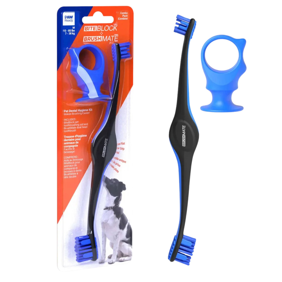 Brush Thoroughly: With your free hand, brush teeth on the opposite side of the BiteBlock, cleaning both inside and outside surfaces. Switch Sides: Remove BiteBlock and repeat on the other side of your dog's mouth using your opposite hand.