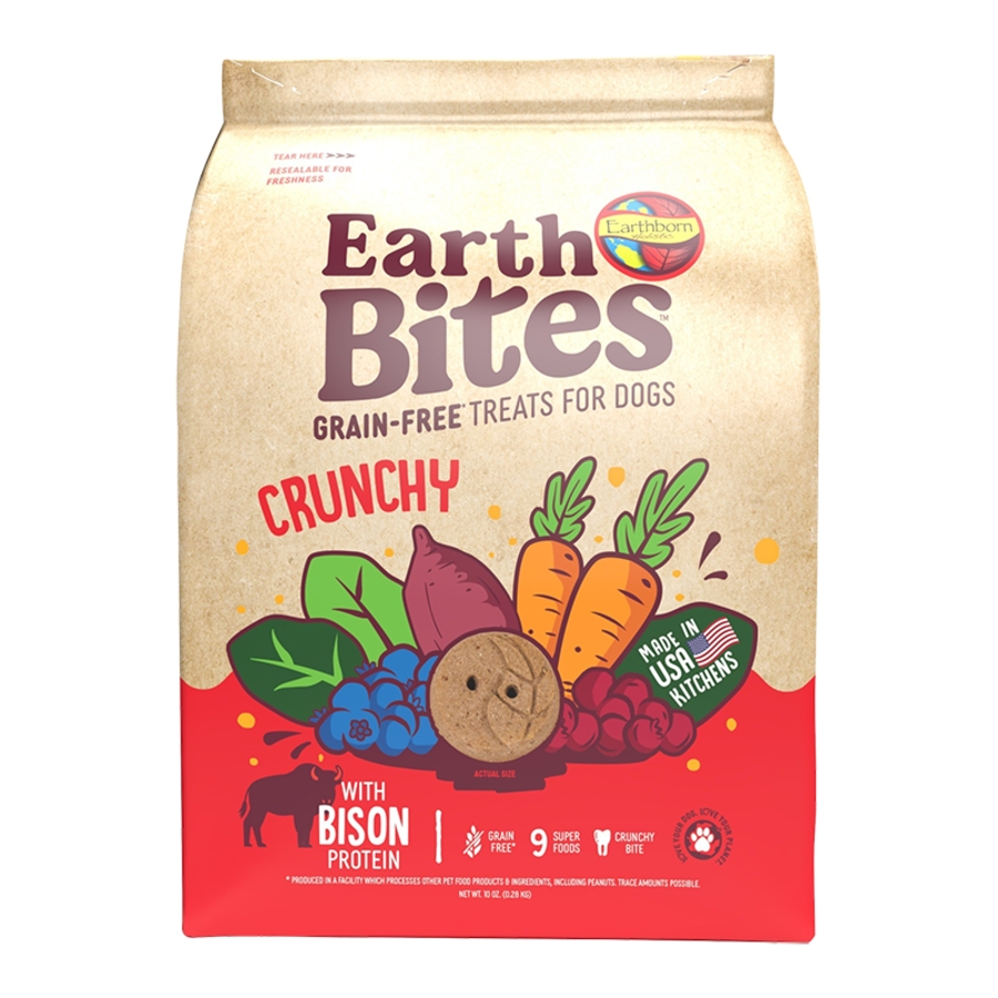 Earthborn Holistic Bison Flavored Crunchy Dog Treats are su-paw tasty and crunchy, and they are good for your furbabys dental health, too! Bison protein is the first ingredient, and the treats are also loaded with yummy superfoods like sweet potato and pumpkin. Added fruits and veggies like apples and blueberries keep your furbaby wanting more. These crunchy treats help keep your pup’s teeth clean and healthy by reducing tartar buildup. They’re grain-free and contain no peas, lentils, legumes or artificial colors, flavors or preservatives.