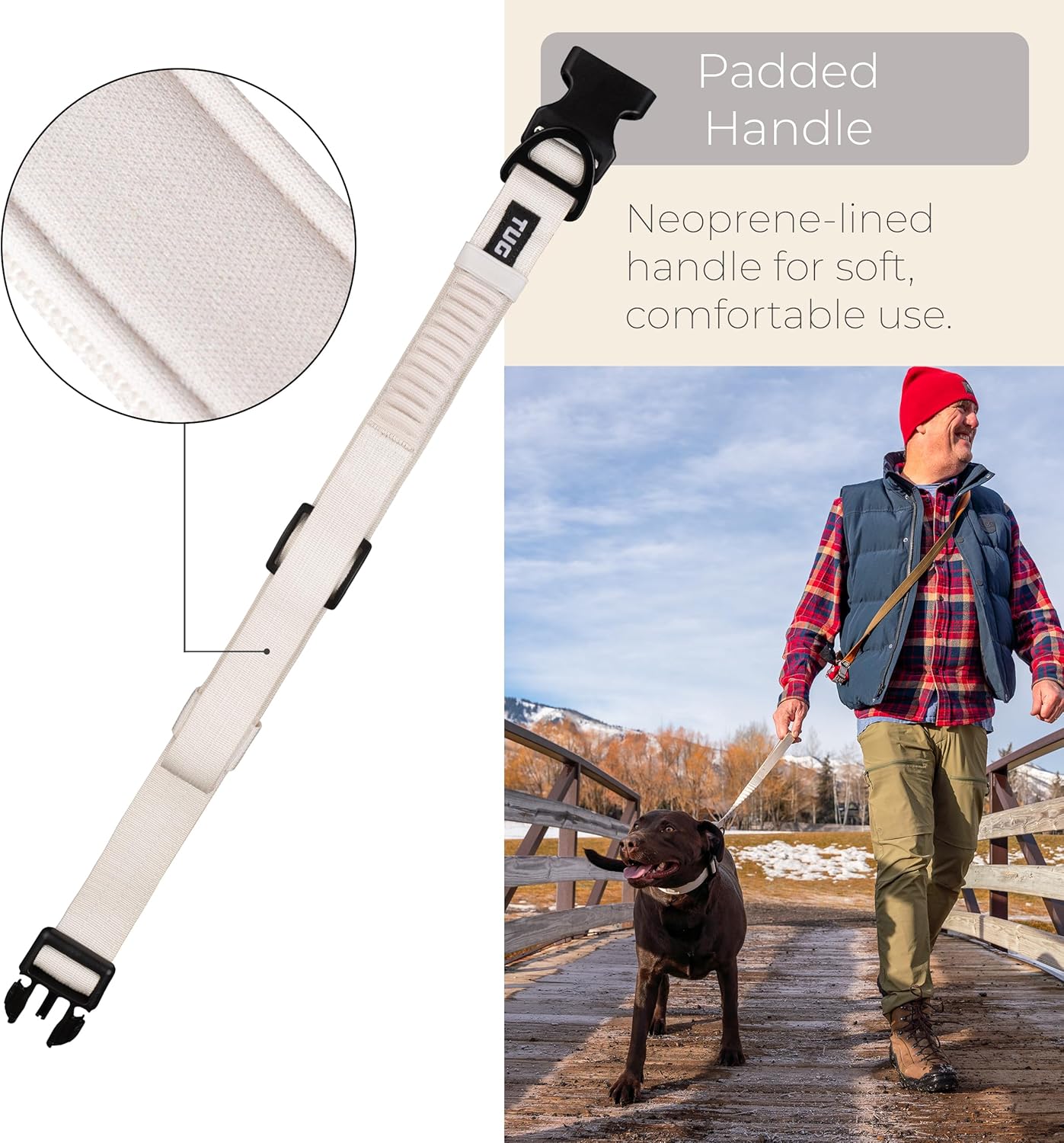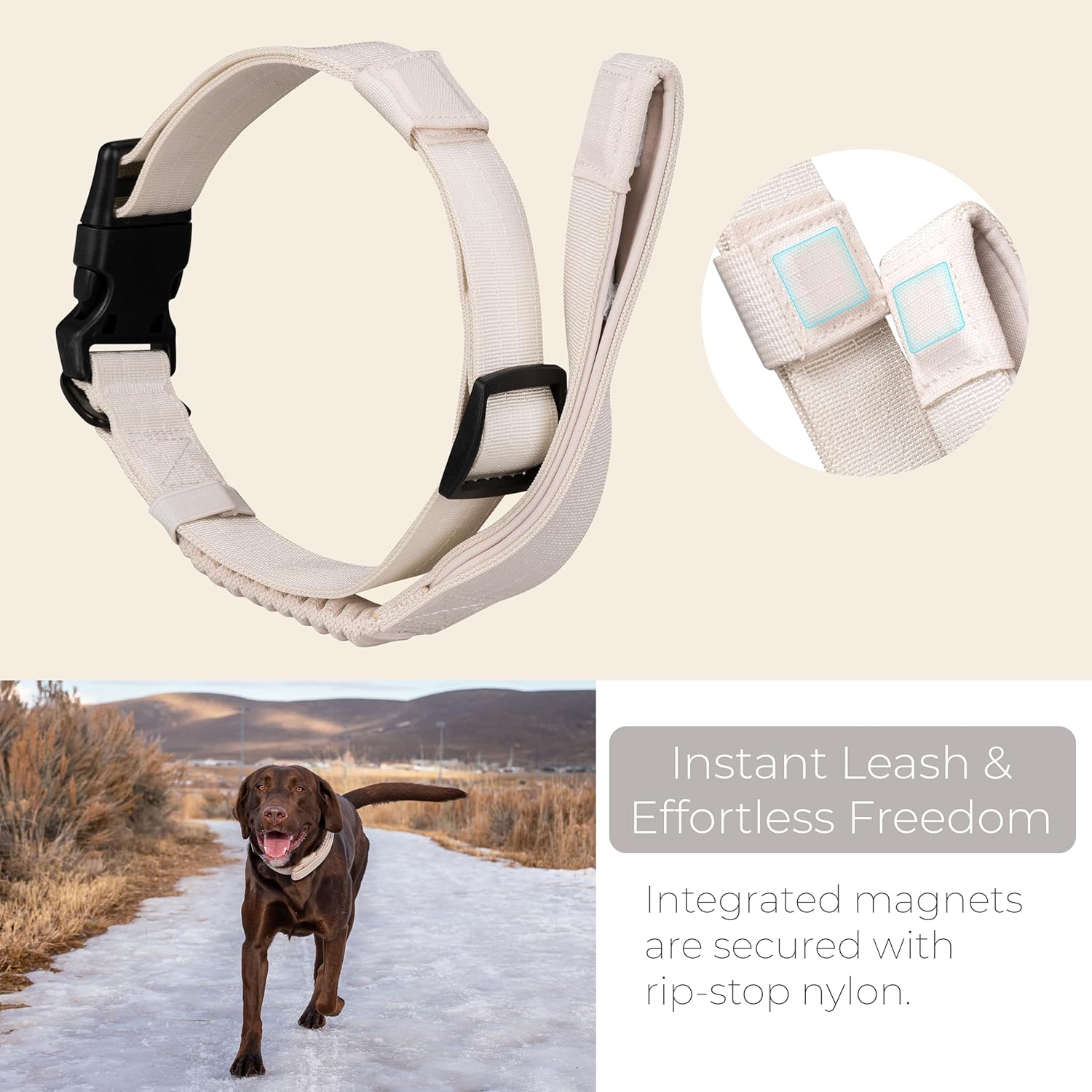 TUG Grab Dog Collar with Integrated Magnetic Short Lead - Cream