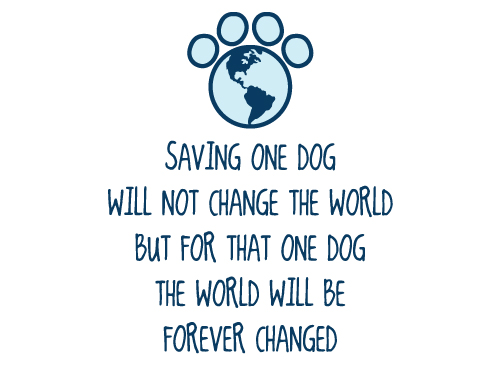"Saving one dog will not change the world, but for that one dog, the world will forever be changed."