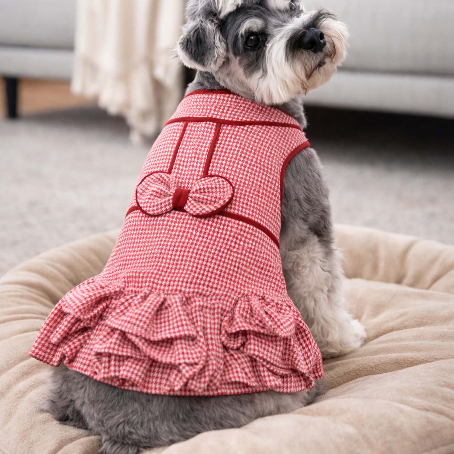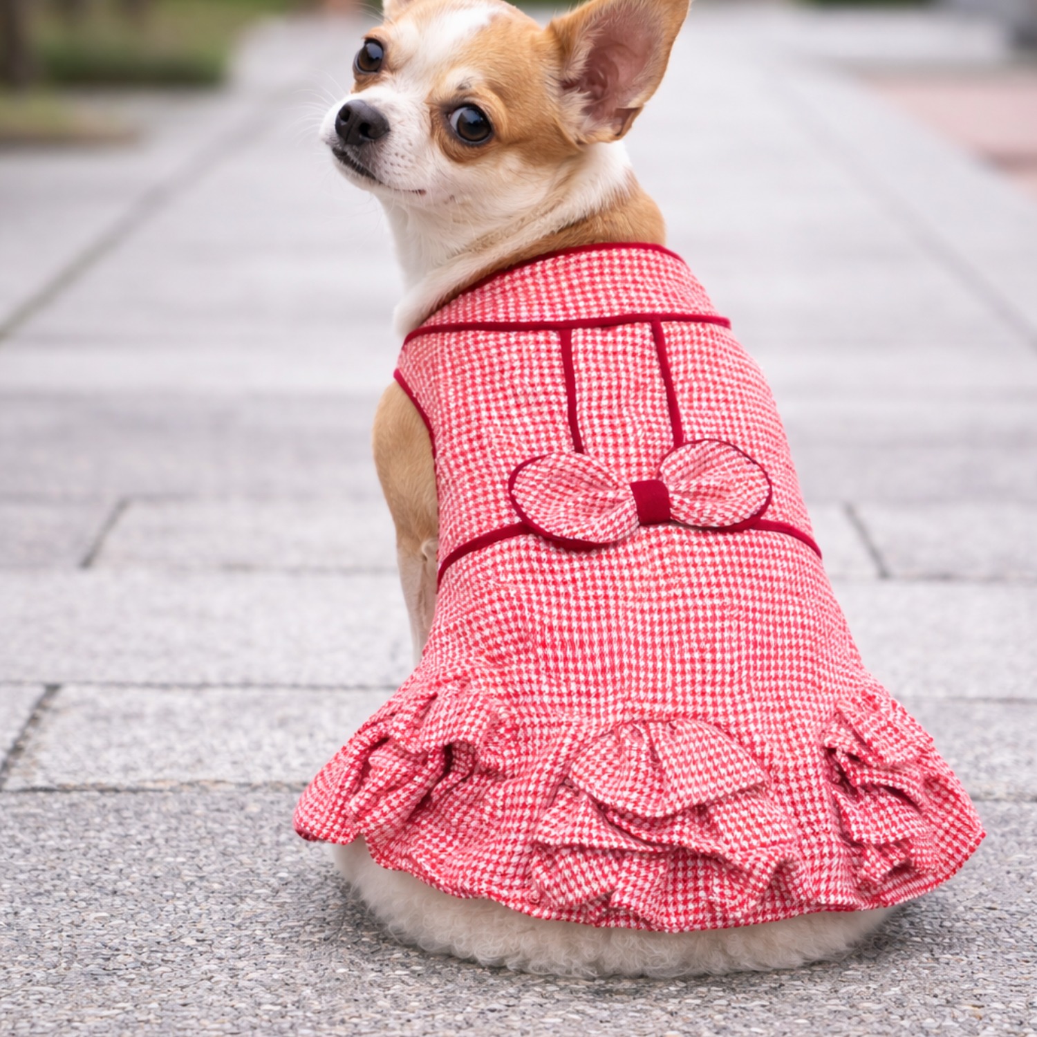 Dress up your furry friend in fashion‑forward style with the houndstooth ruffles dog dress from Parisian Pet — a standout houndstooth dog dress perfect for both dogs and cats. This adorable pet outfit features classic black and white patterning and playful ruffle accents that elevate everyday looks to designer dog apparel status. Crafted for comfort, this comfortable pet dress offers a soft fit ideal for both small and medium breeds. Whether you’re preparing for a special holiday, celebration, or casual outing, this cute pet outfit pairs timeless style with practical wearability. Loved by pet parents who want stylish dog & cat clothing, this ruffles pet dress enhances your pet’s wardrobe with a chic silhouette and classic design. The unique classic houndstooth pattern makes it a versatile choice for photos, parties, and seasonal looks. Designed with quality construction, your pup will enjoy both comfort and fashion with this dog & cat special occasion dress. Add a touch of pet fashion flair with this timeless piece — perfect for Instagram moments, greeting your guests, or gifting to fellow pet lovers. Elevate your pet’s wardrobe today with this standout houndstooth ensemble