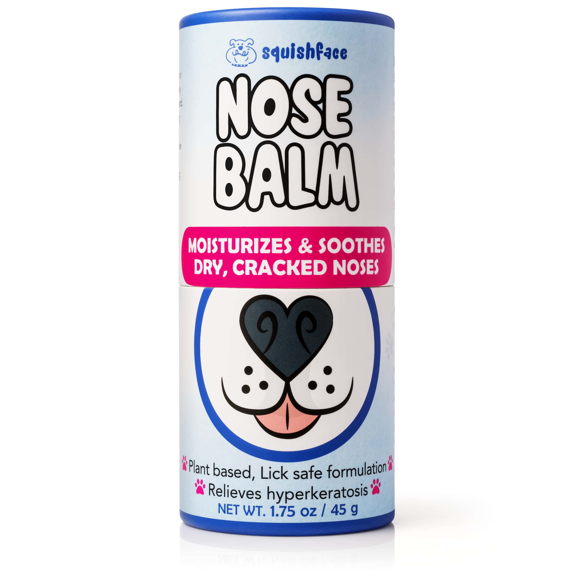 Squishface Nose Balm is a natural solution for itchy, dry, scaly, or crusty dog noses. This nose butter for dogs nourishes your pup's delicate sniffer and helps soften, soothe, and protect against painful dry cracked snouts, skin overgrowth, and hyperkeratosis.