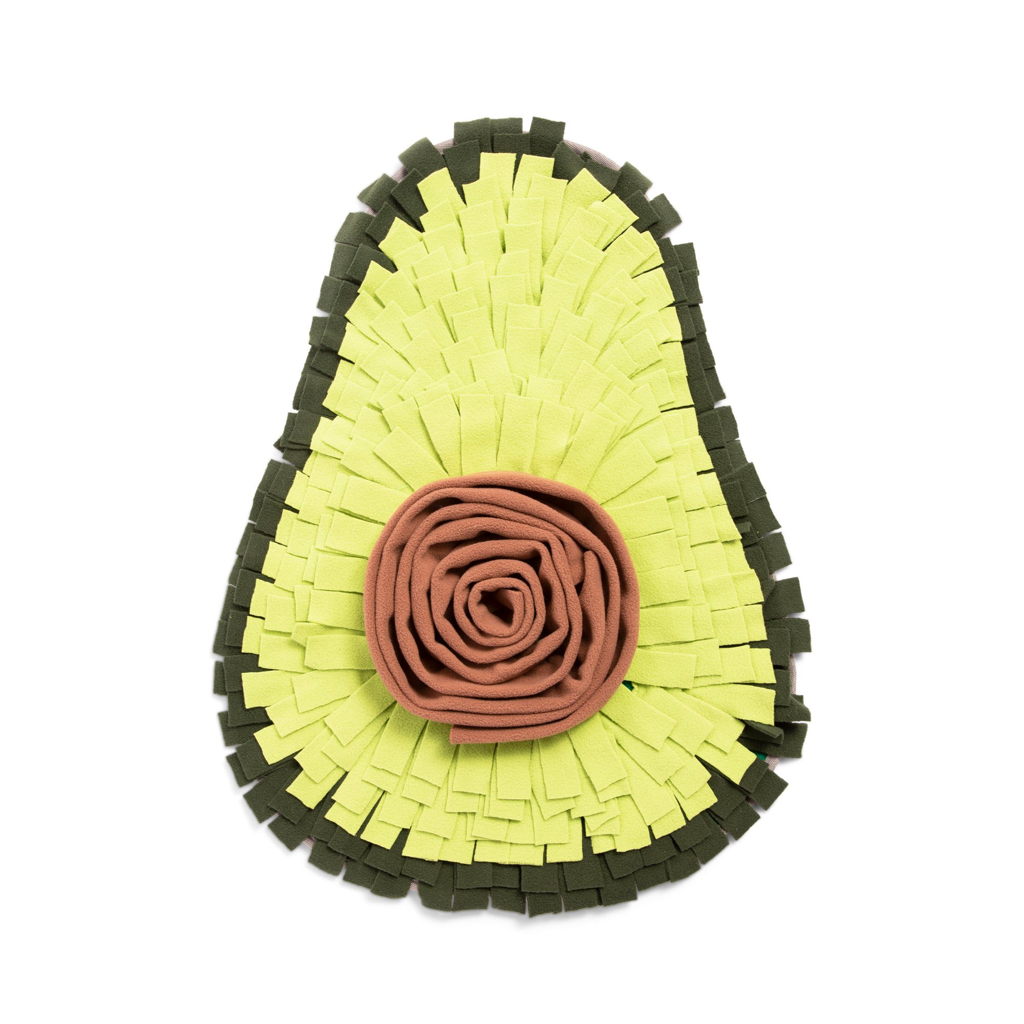 • Interactive Mental Stimulation – Encourages natural foraging instincts and keeps dogs mentally engaged. • Soft & Gentle Fleece – Made with layered fabric strips that are safe on noses and paws. • Fun Avocado Design – Eye-catching, playful shape that stands out in-store and online. • Non-Slip Base – Designed to stay in place during enthusiastic sniff sessions.