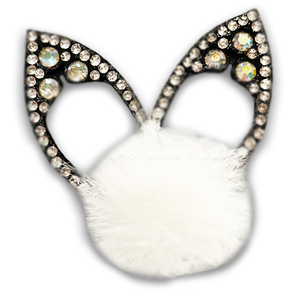 This glam dog bow features sparkling rhinestone bunny ears with iridescent accents and a soft white pom tail center for a playful, luxe look. Lightweight and eye-catching, it adds instant charm to any pup’s style. This design is imported and sold as part of our curated collection. This cute clip is approximately 2" x 2"