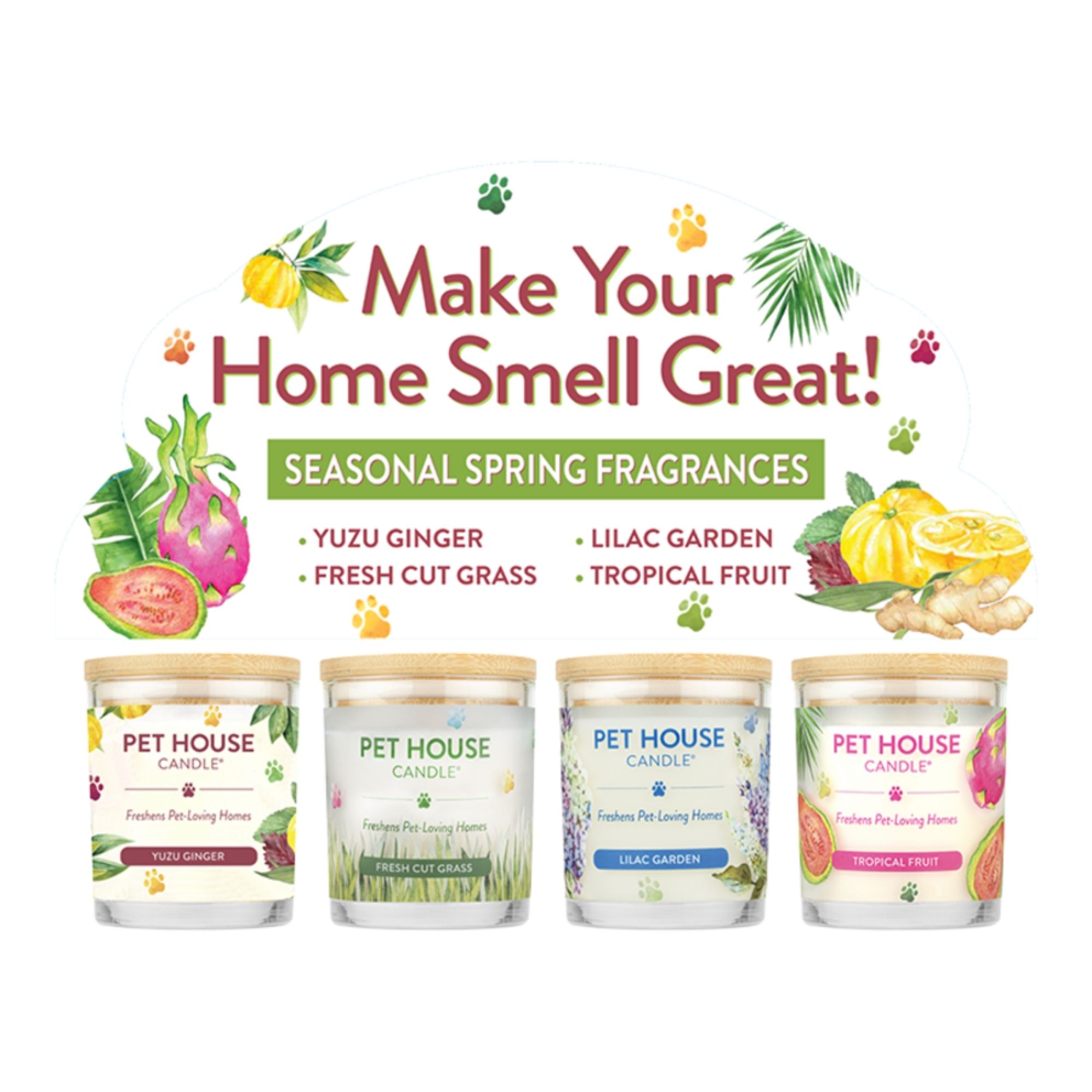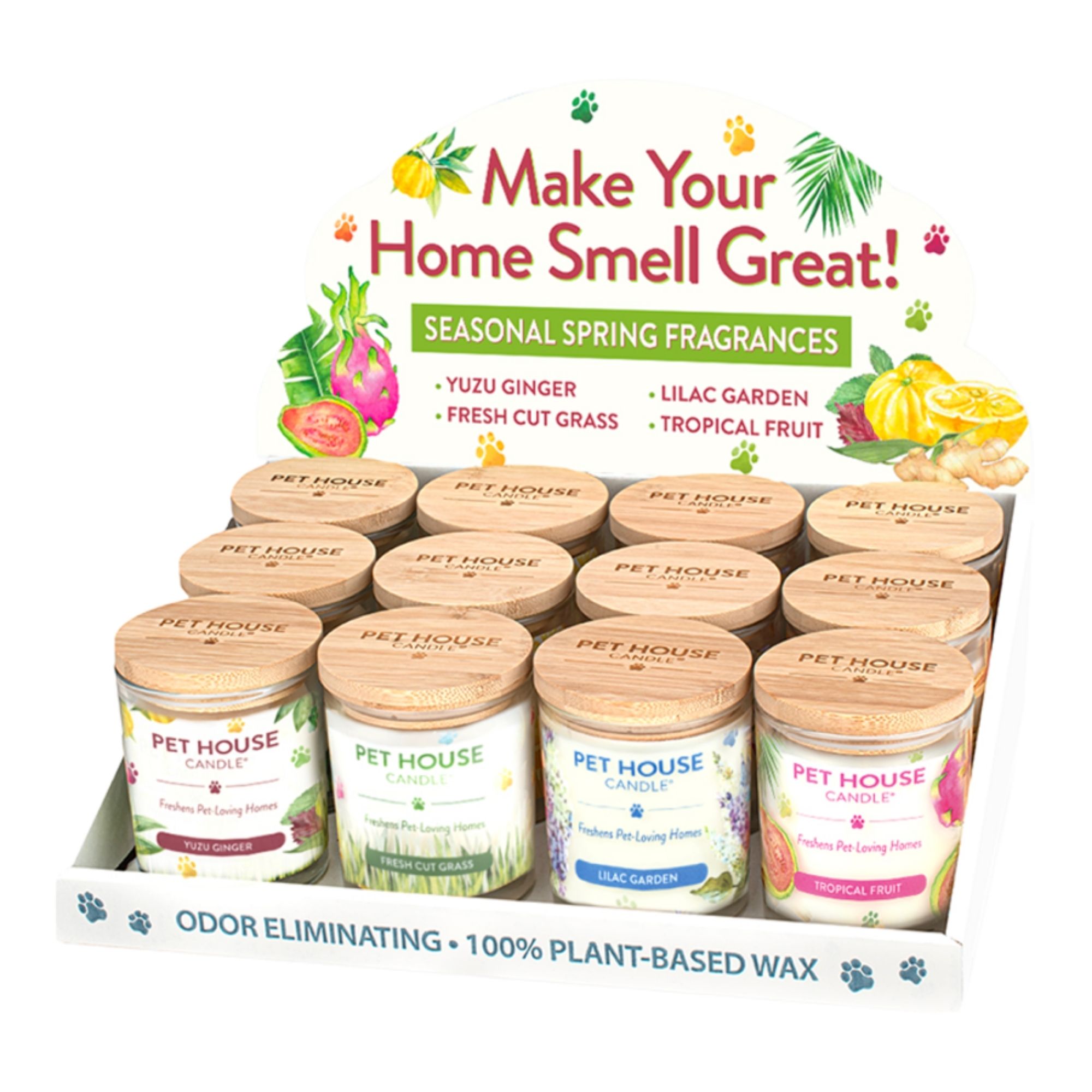 Pet House 2026 Spring Candle Display : Yuzu Ginger Fresh Cut Grass Tropical Fruit Lilac Garden - 12 Piece
