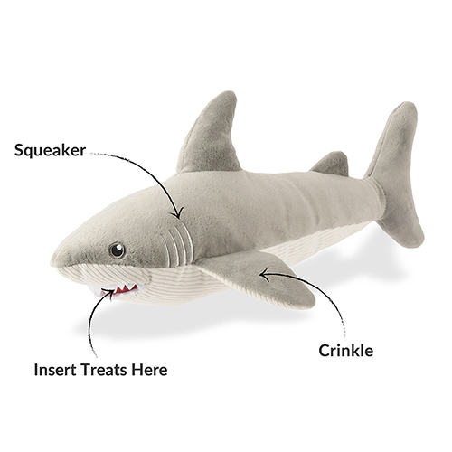 Big, bold and jaw-some, Play’s Great White Gabe is built for high-energy pups who love to chomp, tug and squeak. With crinkles, squeakers and a hidden treat pocket, this mighty shark turns every game of fetch into a deep-sea adventure.