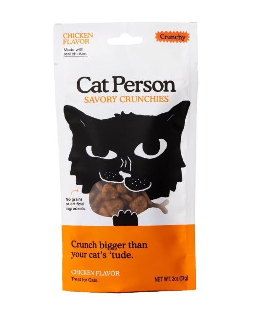 Treat your feline friend to the ultimate indulgence with Cat Person Savory Chicken Grain-Free Crunchy Cat Treats. These simple jerky treats are made just for kitties. Real chicken is the star ingredient, accompanied by fiber-rich pumpkin, salmon oil, and flaxseed to support a shiny coat. These grain-free and low-carb treats contain no potatoes, corn, rice, or wheat, making them the perfect snack for your furry friend’s discerning palate. And with less than three calories per treat, you can spoil your whiskered wonder without any guilt. After all, it’s about the special bond between pet parents and their beloved feline companions.