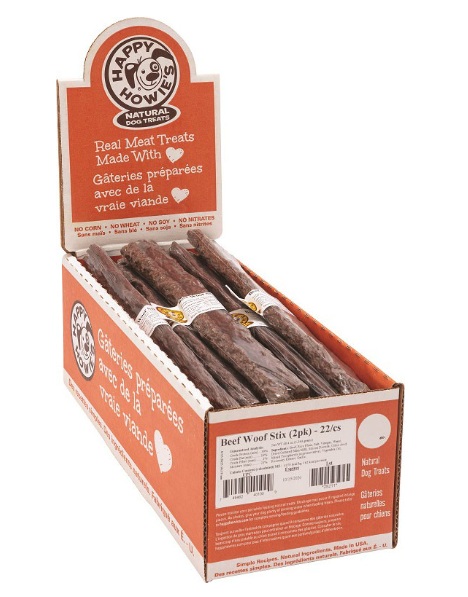HAPPY HOWIE'S WOOF STIX DOG TREAT COUNTER DISPLAY 2PK 22CT