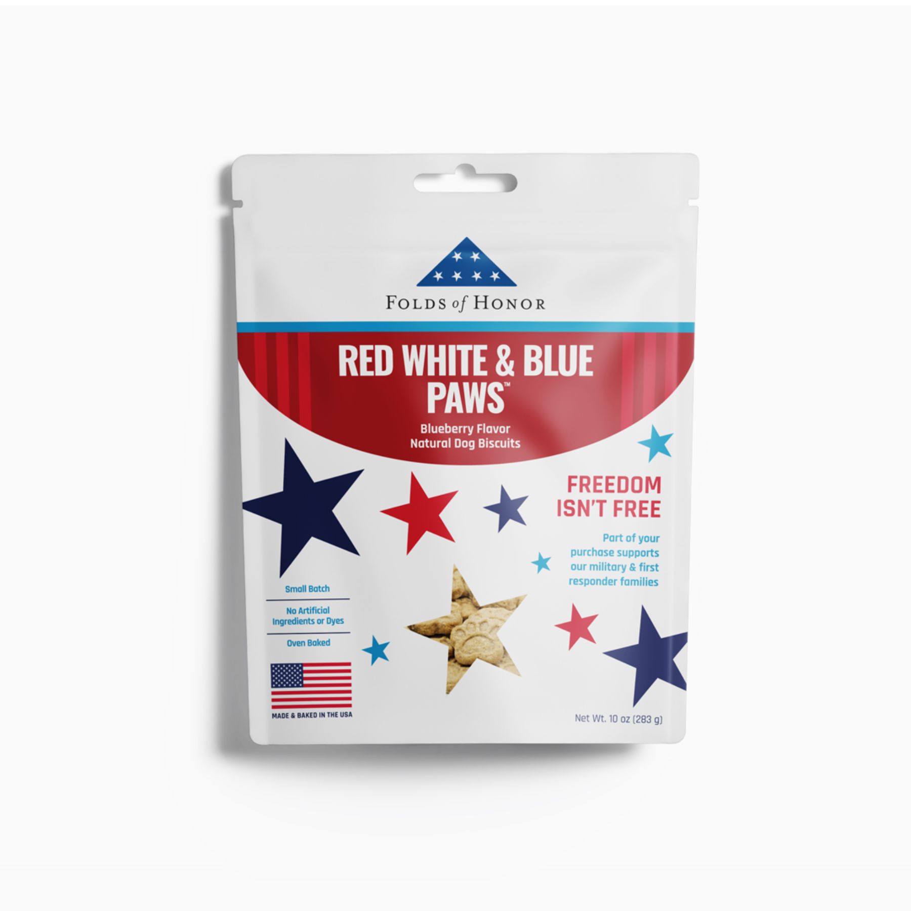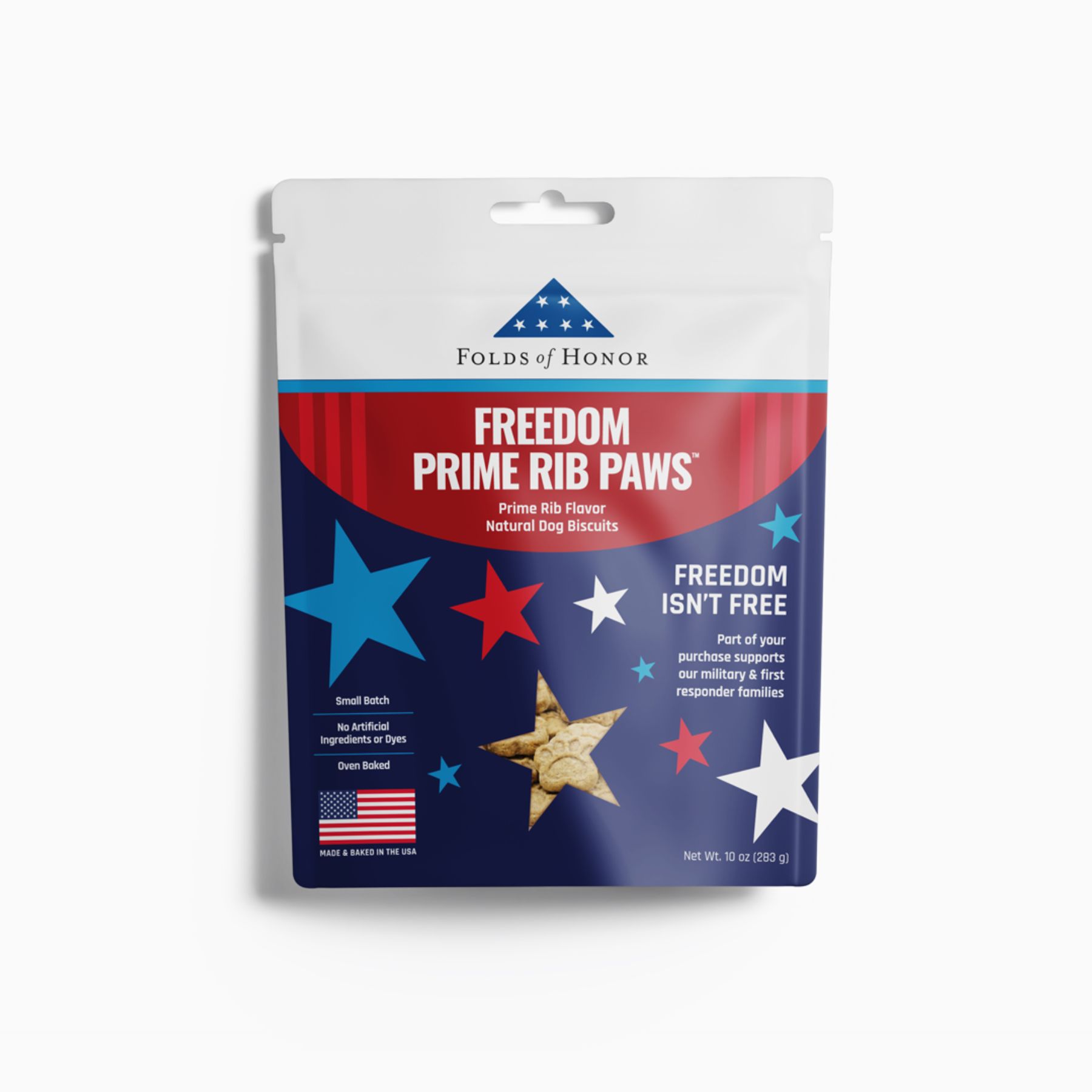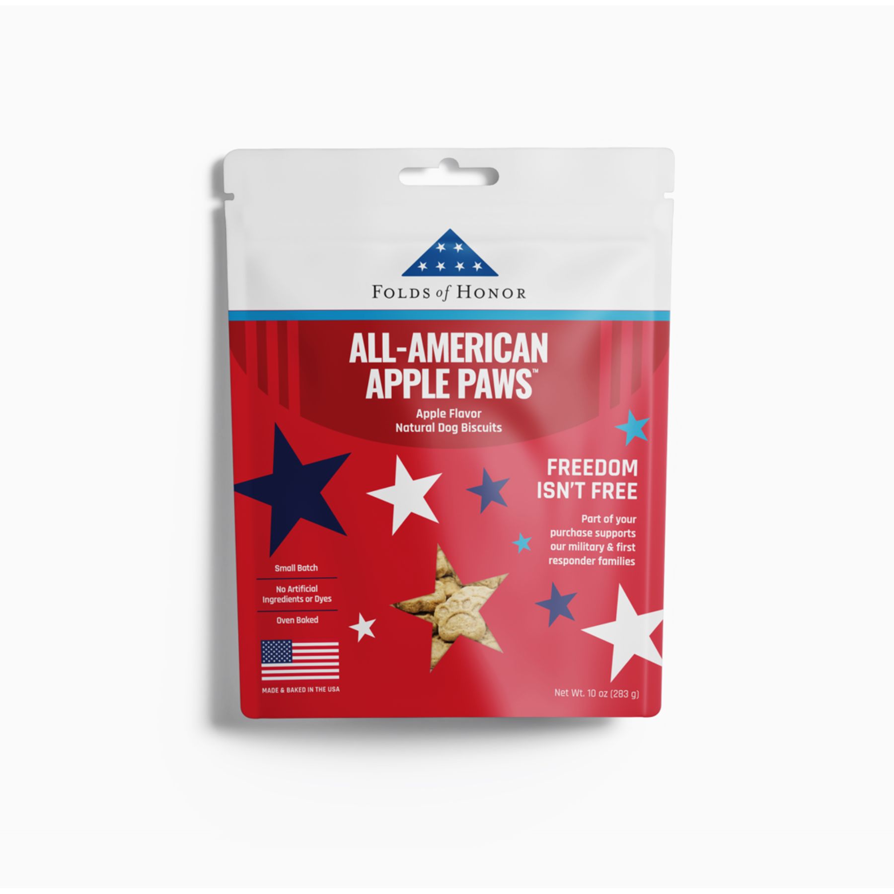 These wholesome, human-grade biscuits are baked fresh in small batches right here in our bakery in Atlanta—because your pup deserves the good stuff! Made with all-natural ingredients, they're a tasty treat that supports a meaningful cause. Every purchase helps Folds of Honor provide scholarships and support to military families and first responders. Give your furry friend a delicious snack while honoring those who serve. It's a win-win that'll have tails wagging!