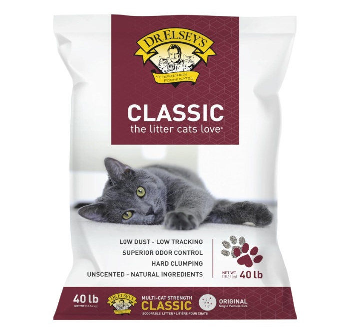 Dr. Elseys Classic This Is Dr. Elseys Original Litter And Is Very Popular With Cat Owners Who Want A Hard Clumping, Low Tracking Litter. It Features A Larger, Denser Particle That Stays In The Litter Box Better Than Fine Grain Litters. It Clum
