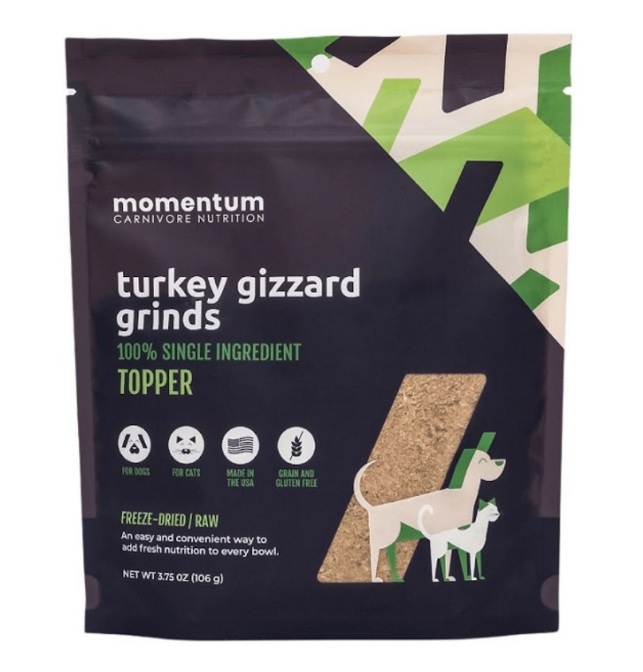 Enhance your pet’s diet with the Momentum Carnivore Nutrition Freeze-Dried Turkey Gizzard Topper. Made from 100% pure turkey gizzards, this nutrient-rich topper provides a high-quality source of lean protein and essential nutrients, making it a wholesome and flavorful addition to your dog or cat’s meals.