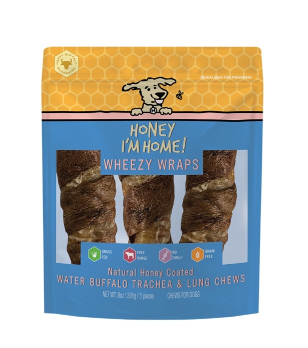 HONEY I'M HOME DOG NATURAL HONEY COATED BUFFALO TRACHEA WRAPPED IN LUNG 6 INCHES 3 PACK