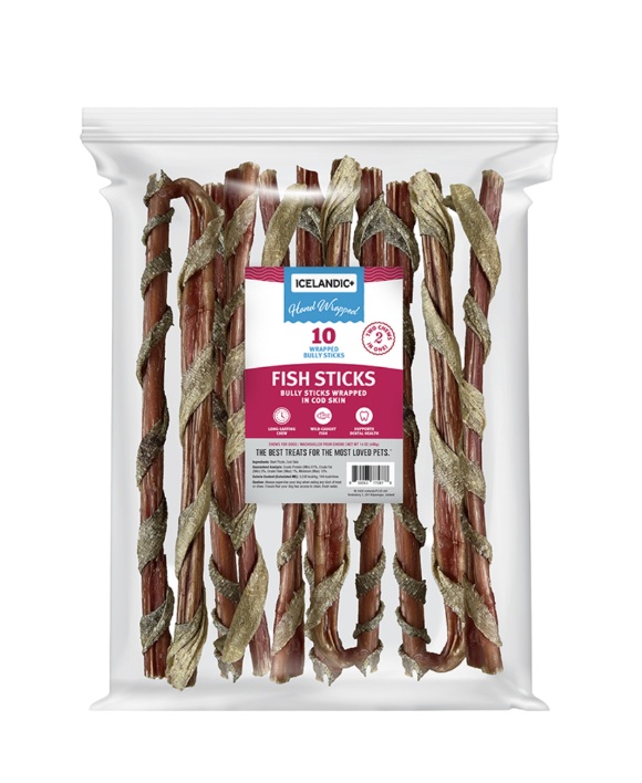 BULLY STICK WRAPPED W/ FISH: 12" - 10PK - Treat your dog to a delicious, nutrient-rich chew that goes above and beyond the ordinary. Each piece begins with premium USA-sourced beef pizzle, then is thoughtfully hand-wrapped in wild-caught cod skin, creating a flavorful two-in-one combo dogs can’t resist. DENTAL HEALTH: These natural treats offer a satisfying texture that helps reduce plaque and tartar buildup while supporting overall dental health. HEALTHY SKIN & COAT: Packed with quality protein to help maintain strong muscles, these chews also promote healthy skin and a shiny coat. This flavorful, high-protein chew keeps pups mentally stimulated and happily occupied for longer. Easily digestible and made without artificial flavors, colors, fillers, or preservatives, this wholesome rawhide alternative delivers pure, simple ingredients your dog will love.