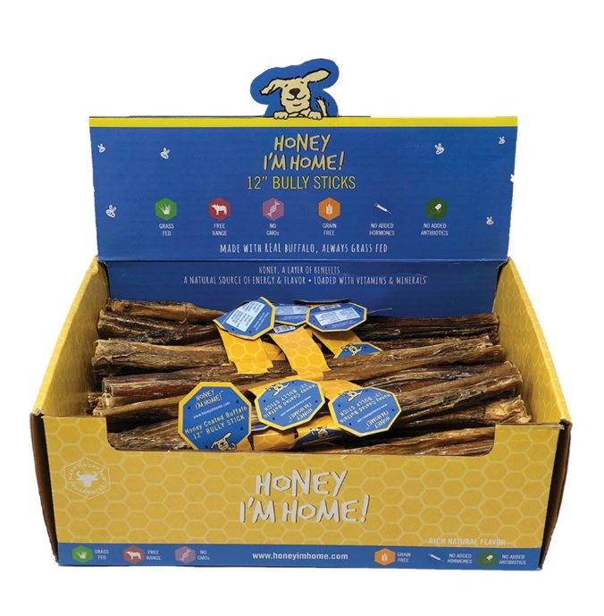 If you're looking for some un-bull-ievably tasty snacks for your dog, try Honey I'm Home! 12" Bully Sticks Natural Honey Coated Buffalo Chews Grain-Free...