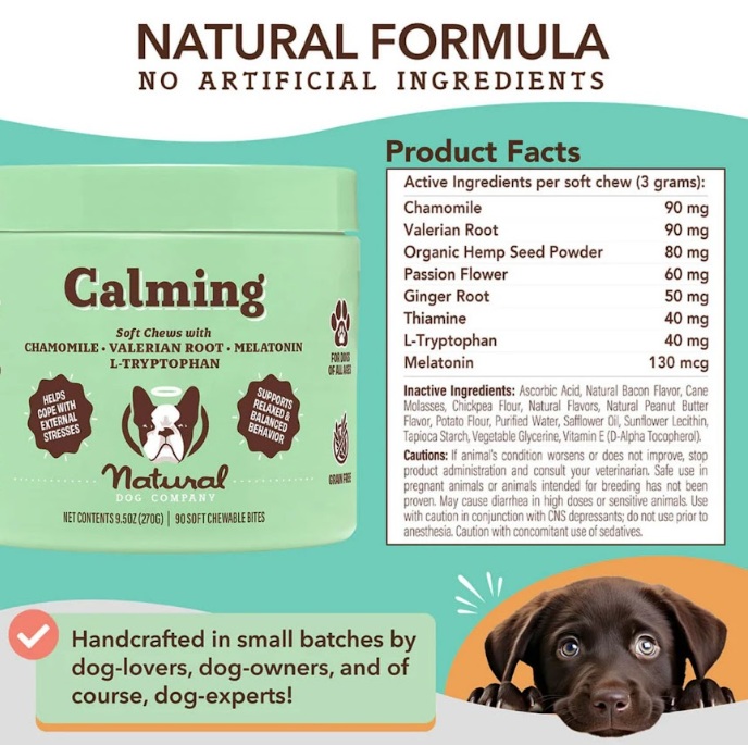 Calm Your Pup & Promote RelaxationOur Calming Supplement chews provide a calm, relaxing effect through a potent blend of Melatonin, Valerian...