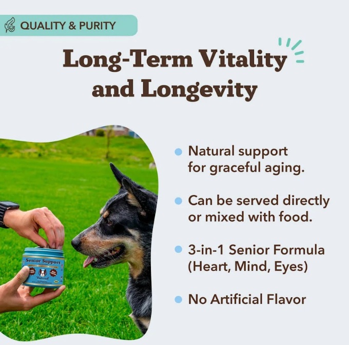 Targeted brain, heart, and vision support for dogs 7+A Smarter Way to Support Senior DogsAs dogs age, their health needs become more specific—and...