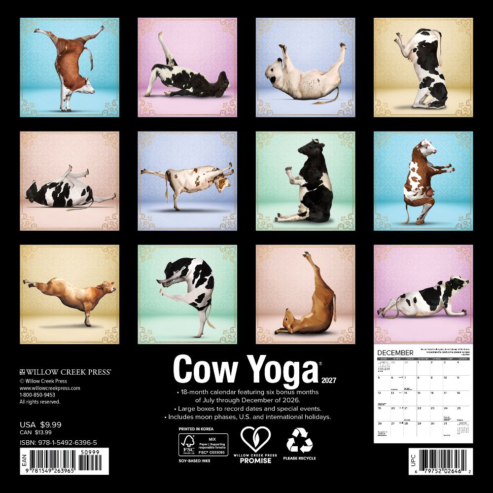 BOVINE BALANCE – Dive deep into the whimsical world where cows earnestly embrace yoga, seeking the dual benefits of relaxation and enhanced milk production. PLAN IN STYLE – Our 7” x 7” wall calendars are the perfect fit for small spaces and the modern workplace. Six bonus months from 2026 (July to December) provide a smooth transition into 2027, while monthly grids offer ample room for jotting notes and planning the year ahead. PICTURE-PERFECT QUALITY – Enjoy crisp, colorful monthly photos that double as wall art for your home, office, or school. Plus, it's printed with soy-based inks on high-quality FSC certified paper for smooth writing. SCHEDULE WITH EASE – Be inspired, take notes, remember dates, track appointments, and manage family activities with ease.