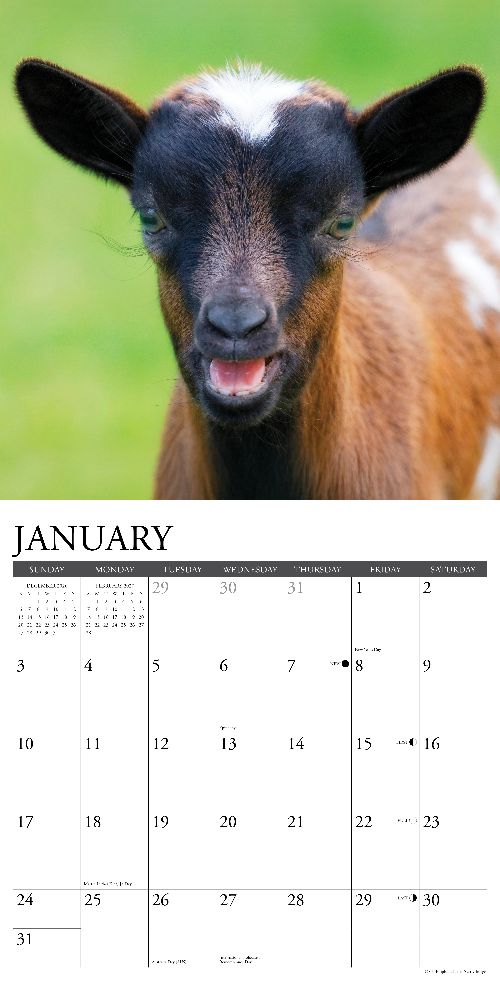 GOAT LOVERS' DELIGHT - This 2027 wall calendar features a year full of adorable baby goats captured in playful and heart-melting moments. Each vibrant image brings a bit of countryside charm to your space, perfect for brightening any room. PLAN IN STYLE – Stay organized with our 12” x 12” monthly wall calendars, the perfect fit for any home or modern office. Six bonus months from July to December 2026 provide a smooth transition into the new year, while large monthly grids from January through December 2027 offer ample room for jotting notes and planning. PICTURE-PERFECT QUALITY – Printed with soy-based inks on high-quality FSC-certified paper, our large format 12” x 12” wall calendars offer smooth writing, crisp readability, and vibrant imagery, making them a welcome accent to any space. EFFORTLESS SCHEDULING – Enjoy ample space to note events, track appointments, and easily organize activities. Manage busy schedules at-a-glance with clearly noted moon phases (CST), holidays, and observances.