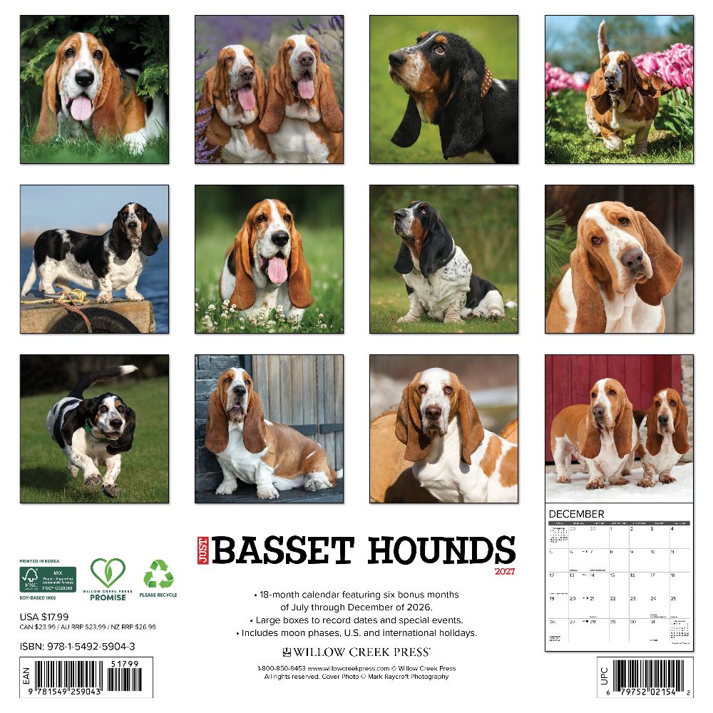 DROOPY-EARED CHARM - This delightful 2027 wall calendar is full of lovable Basset Hounds showcasing their signature long ears, soulful eyes, and relaxed...
