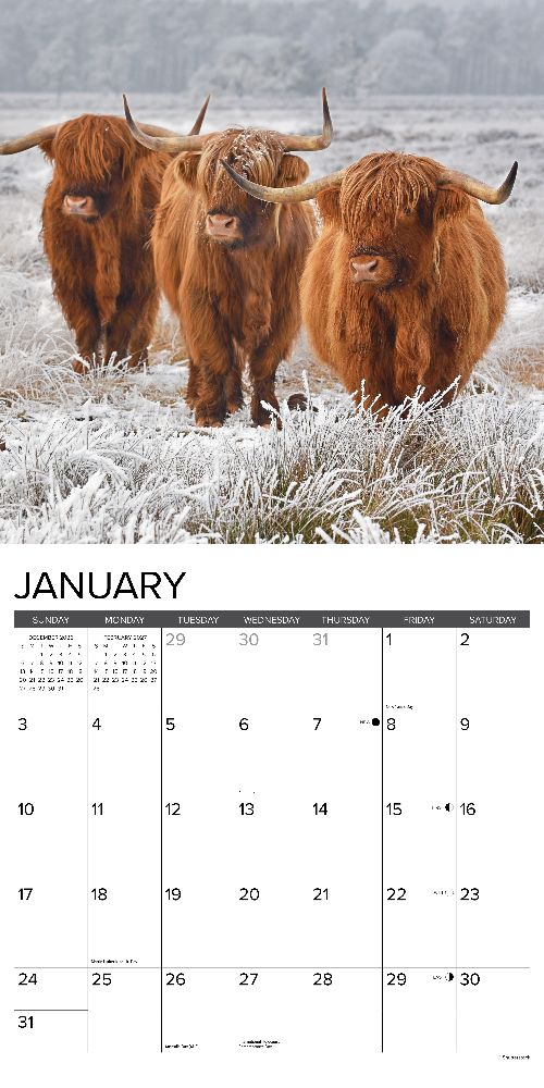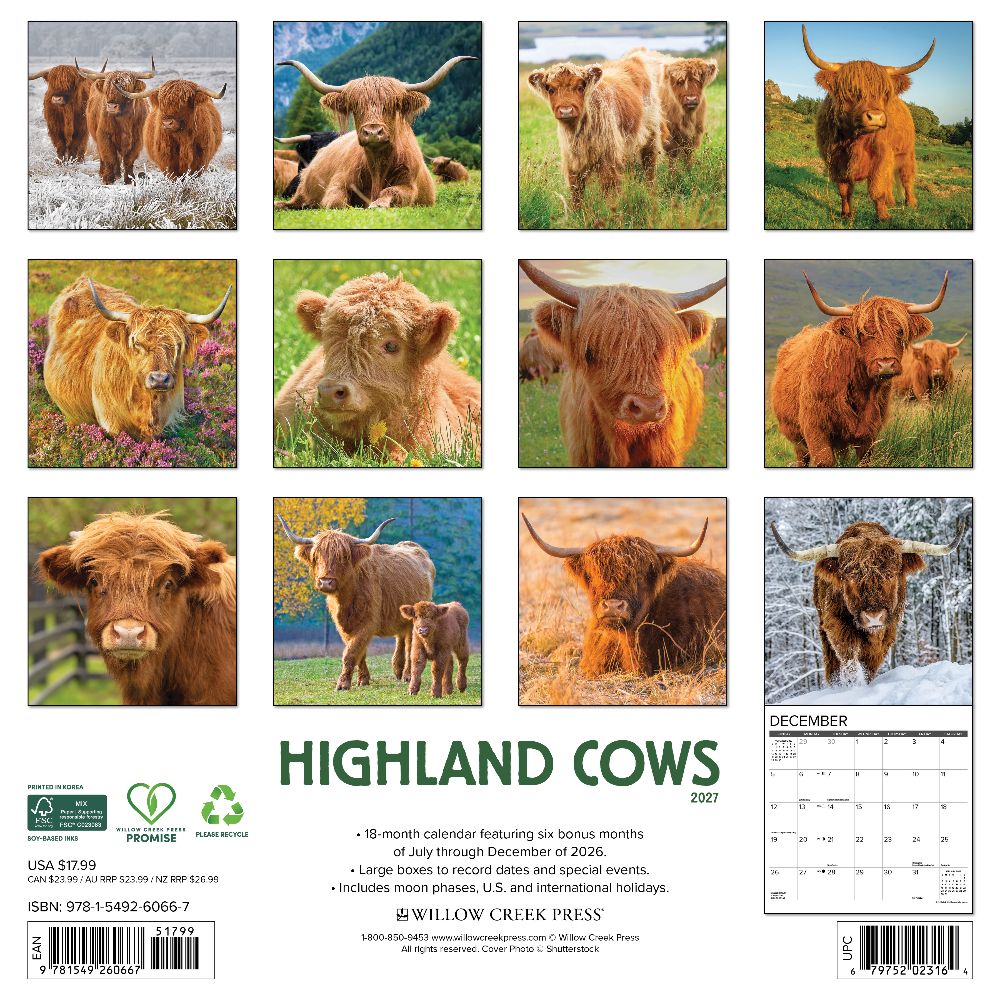 GENTLE GIANTS – Originating from Scotland as far back as the 6th century, the gentle giants featured in the 2027 Highland Cows 12" x 12" Wall Calendar...